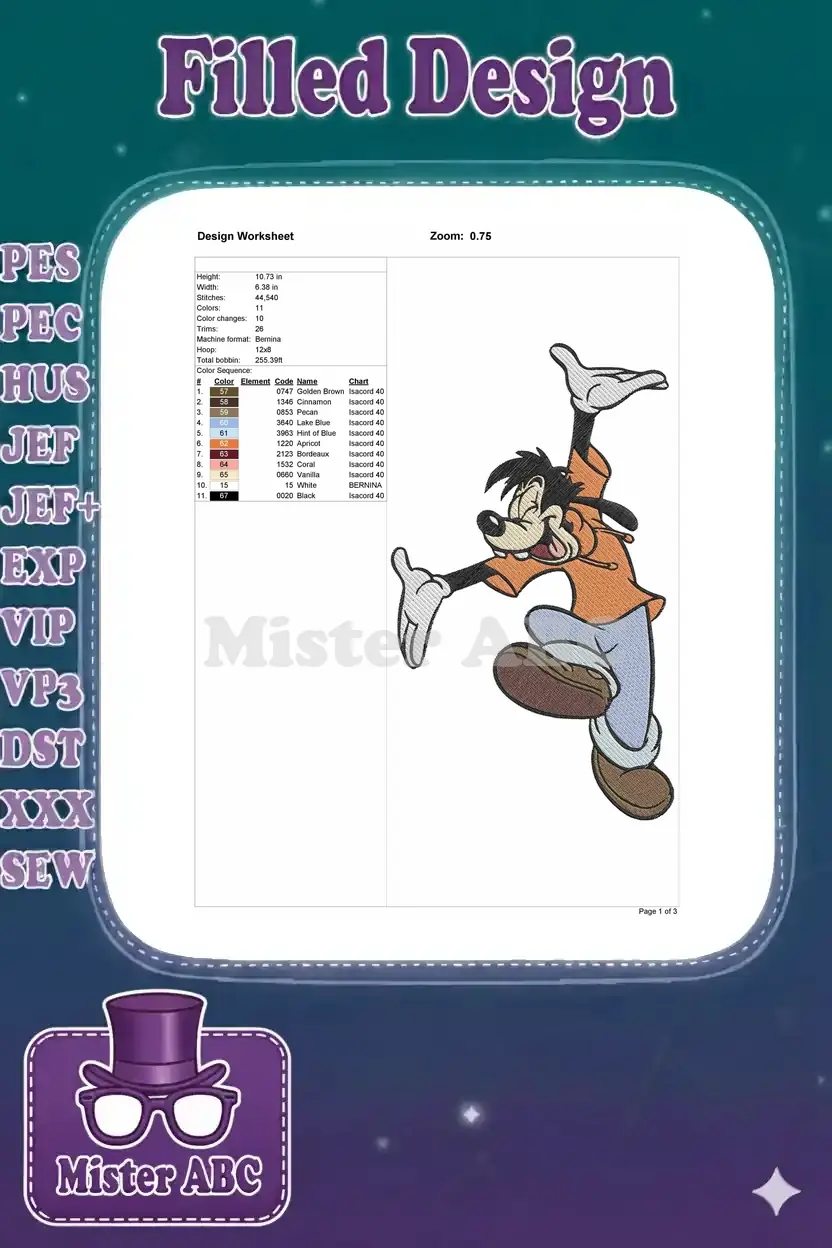 Energetic Max Goof Happy Jumping Disney Character Embroidery Designs