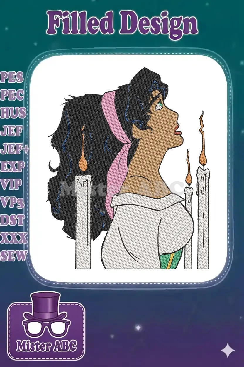 Esmeralda Character Hopeful Gaze by Candlelight Embroidery Designs