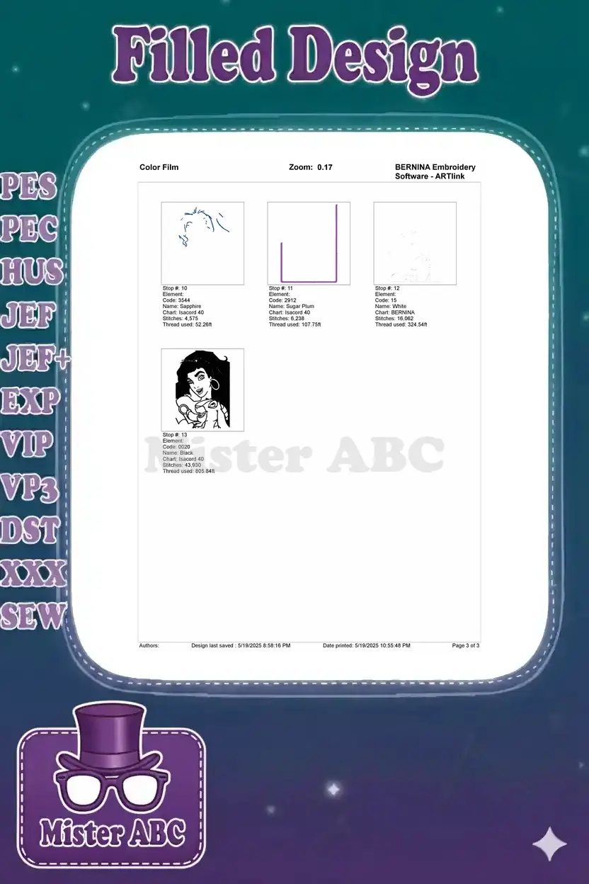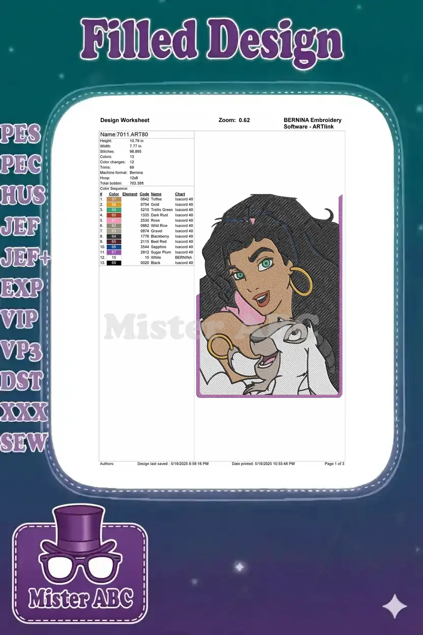 Esmeralda and Djali Disney cartoon character embroidery designs