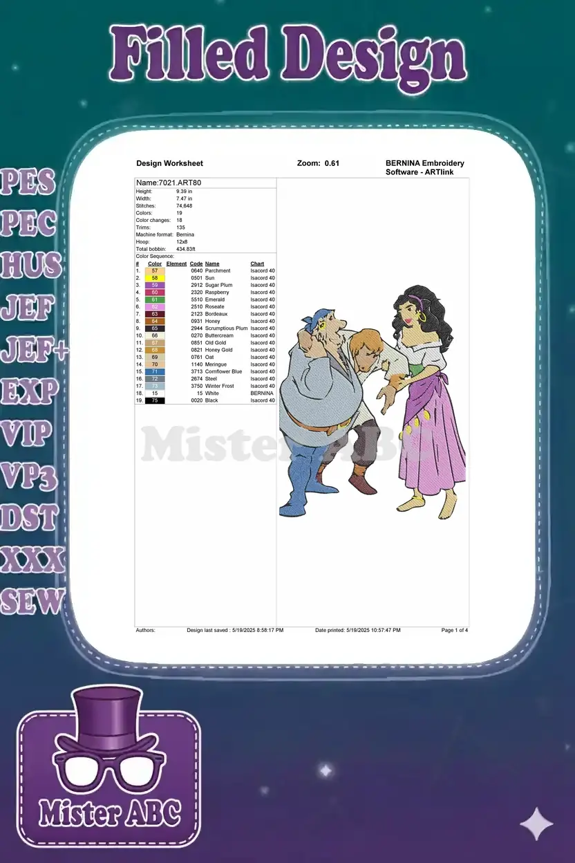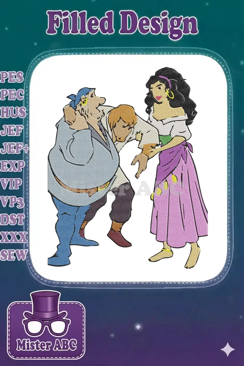 Esmeralda Quasimodo Rescuing Man Hunchback of Notre Dame Embroidery Designs
