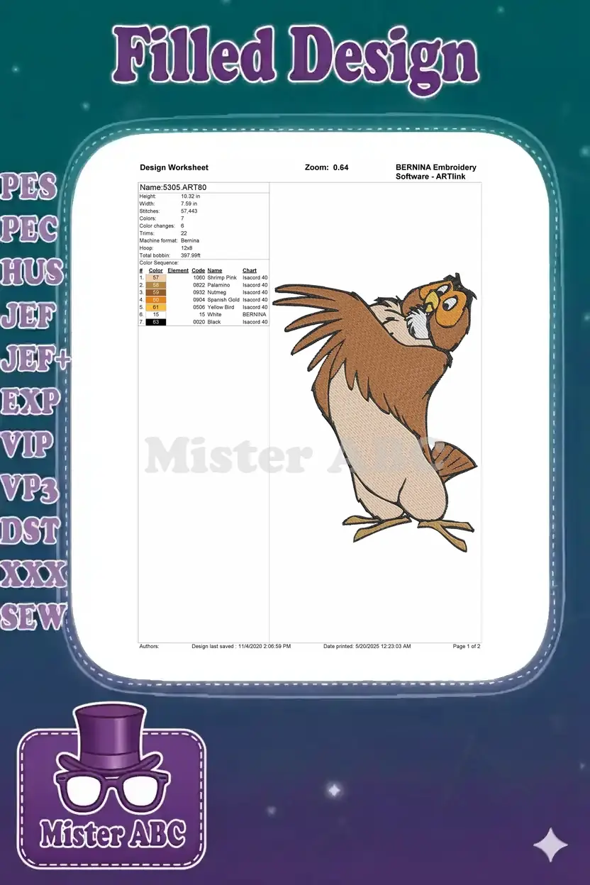 This charming Winnie the Pooh Owl embroidery design brings classic animation to life with vibrant stitches. Perfect for fans!