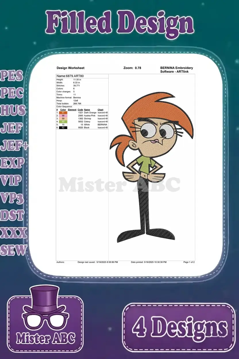 Fairly Oddparents Cosmo Wanda Timmy Turner Chester Mcbadbat Aj Friends Collection – Filled Embroidery Design