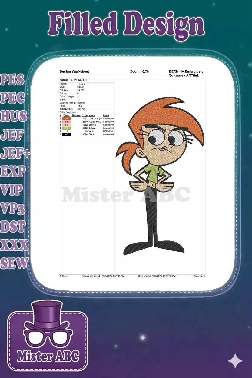 Fairly OddParents Vicky angry expression cartoon embroidery designs