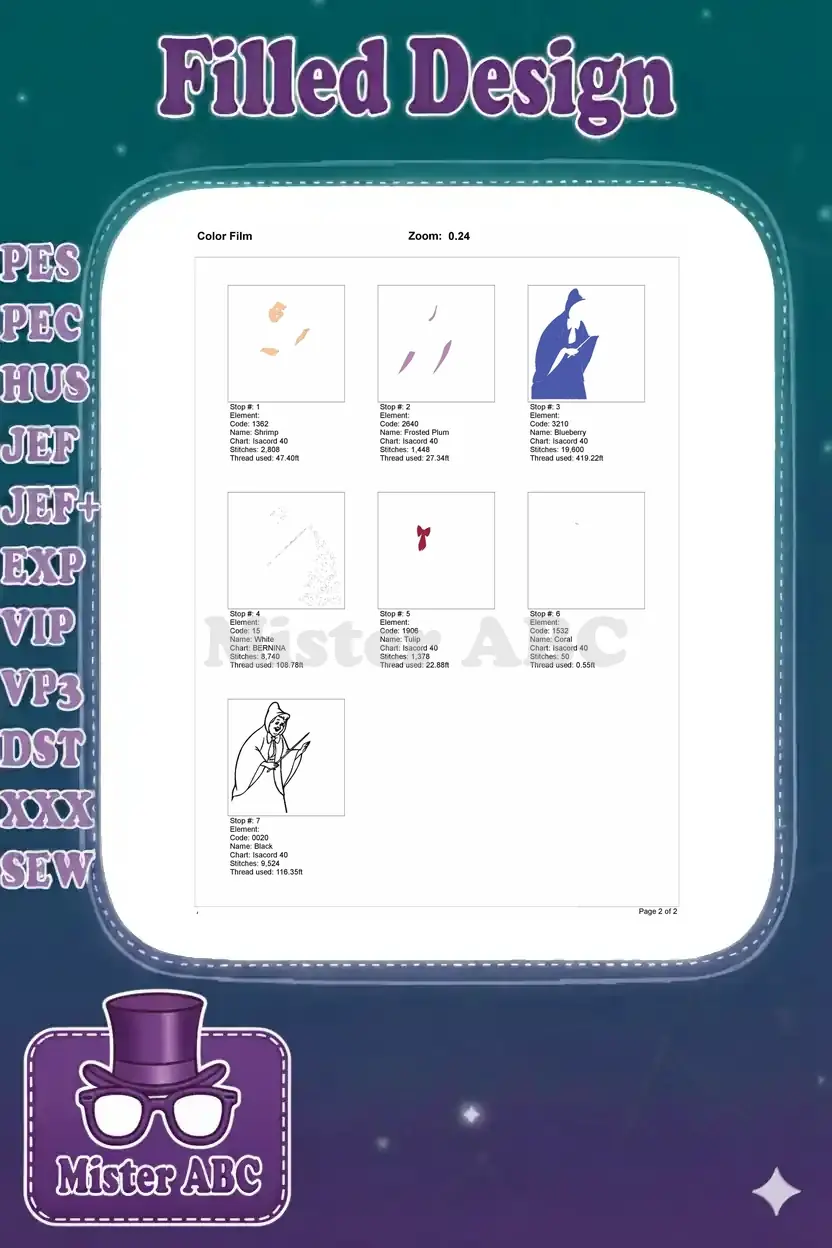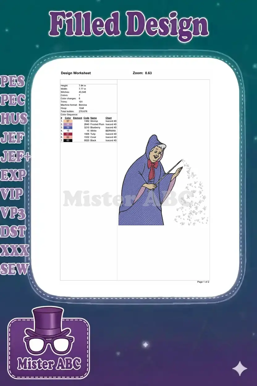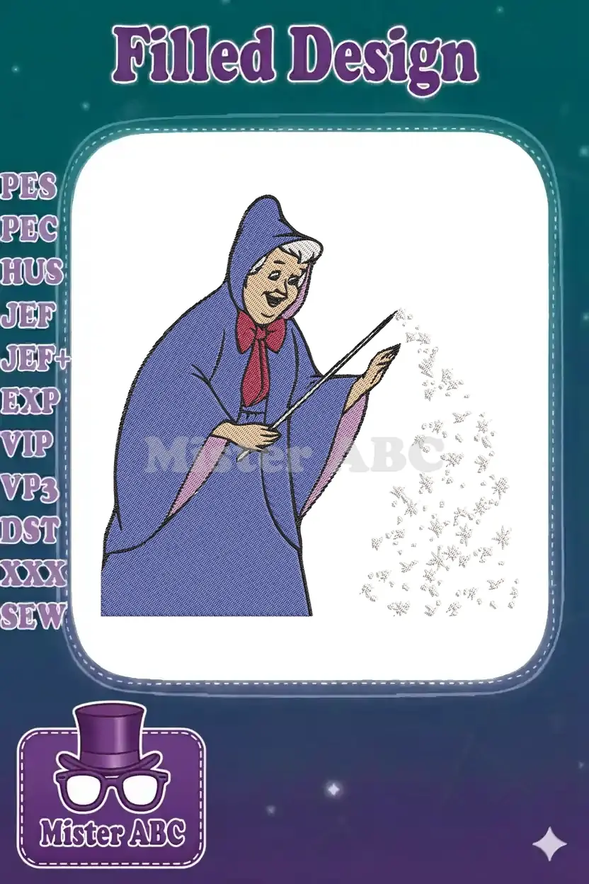 Bring enchantment to your projects with this delightful Fairy Godmother embroidery design. Perfect for magical apparel and decor!