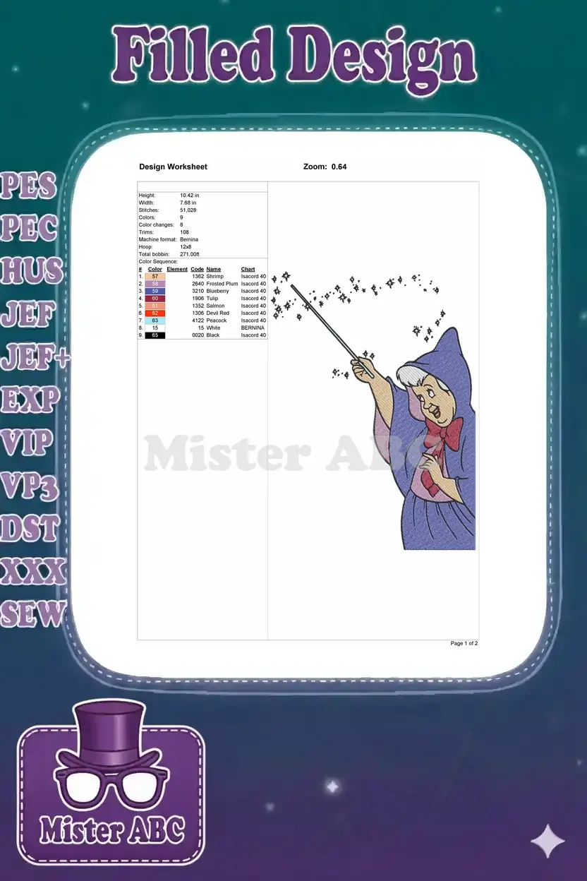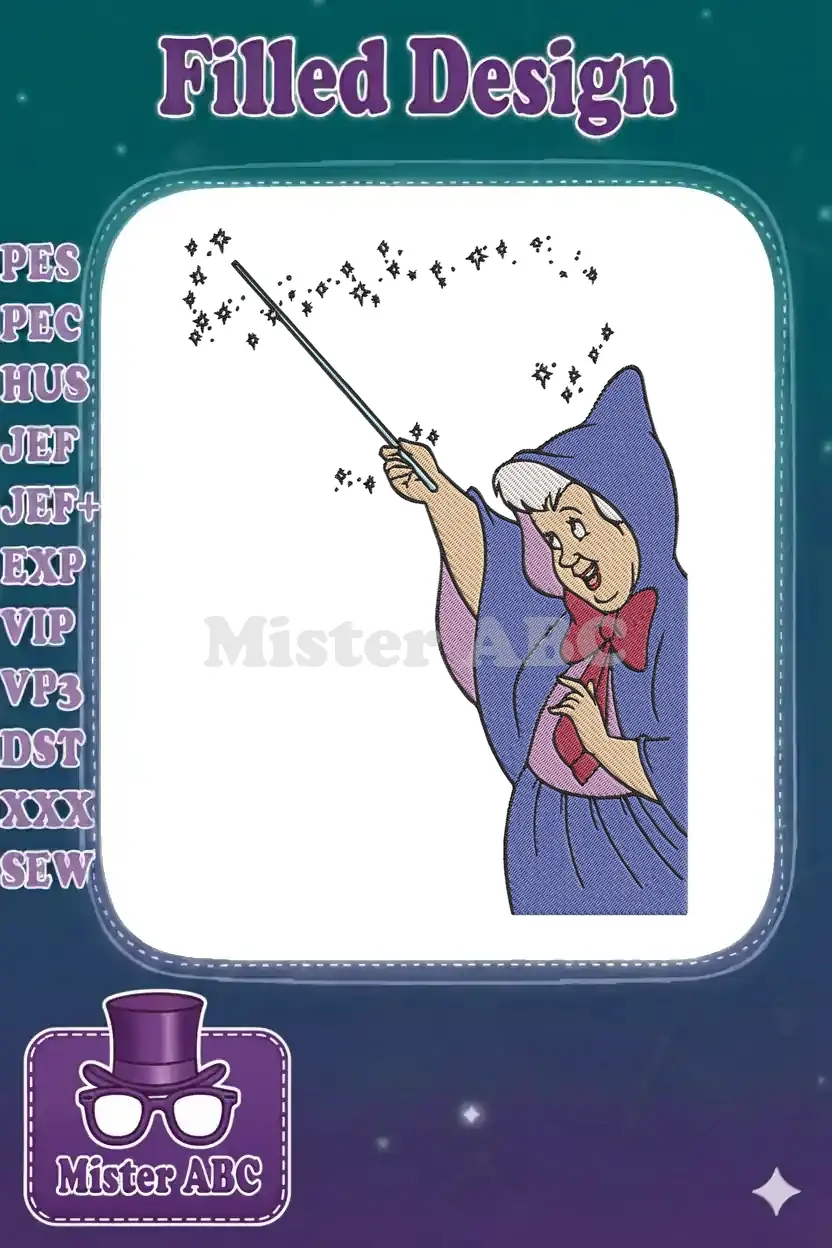 Fairy Godmother Casting Magic Spell with Wand Embroidery Designs