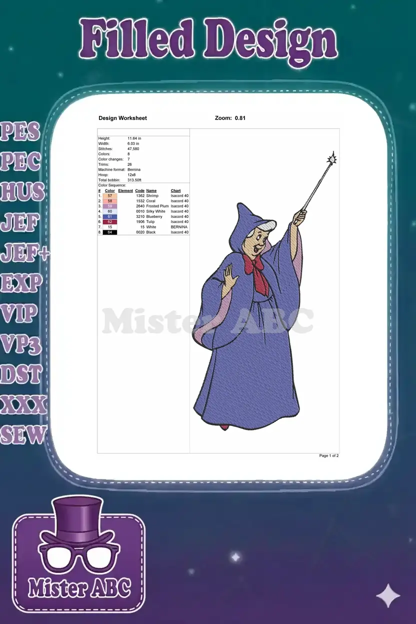 Fairy Godmother with Magic Wand Embroidery Designs