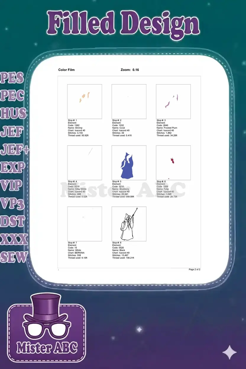 | Stitches | Colors | Thread Changes |
