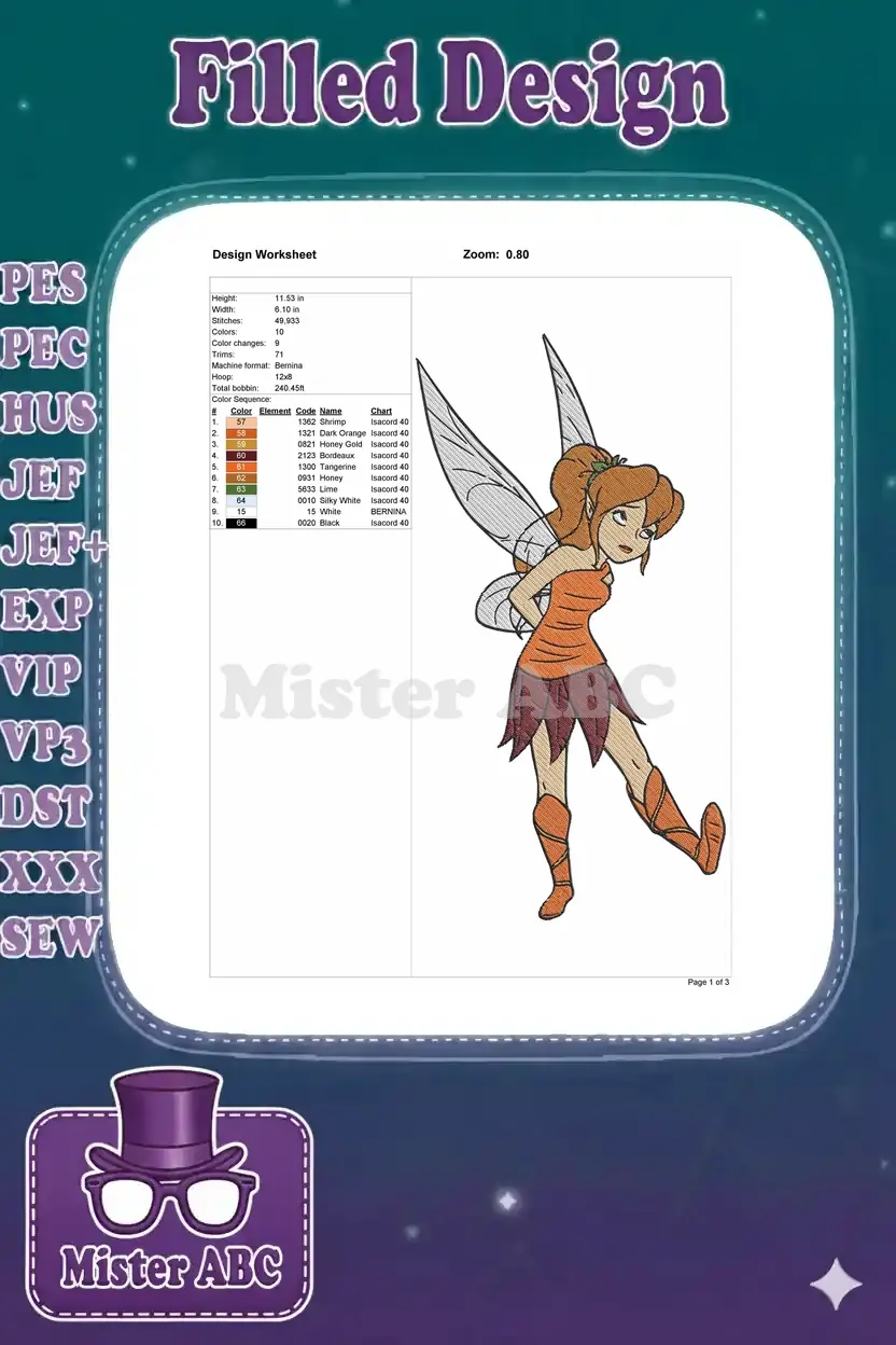 Fawn the animal fairy with translucent wings embroidery designs