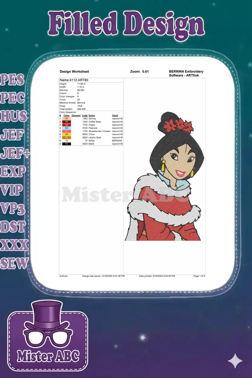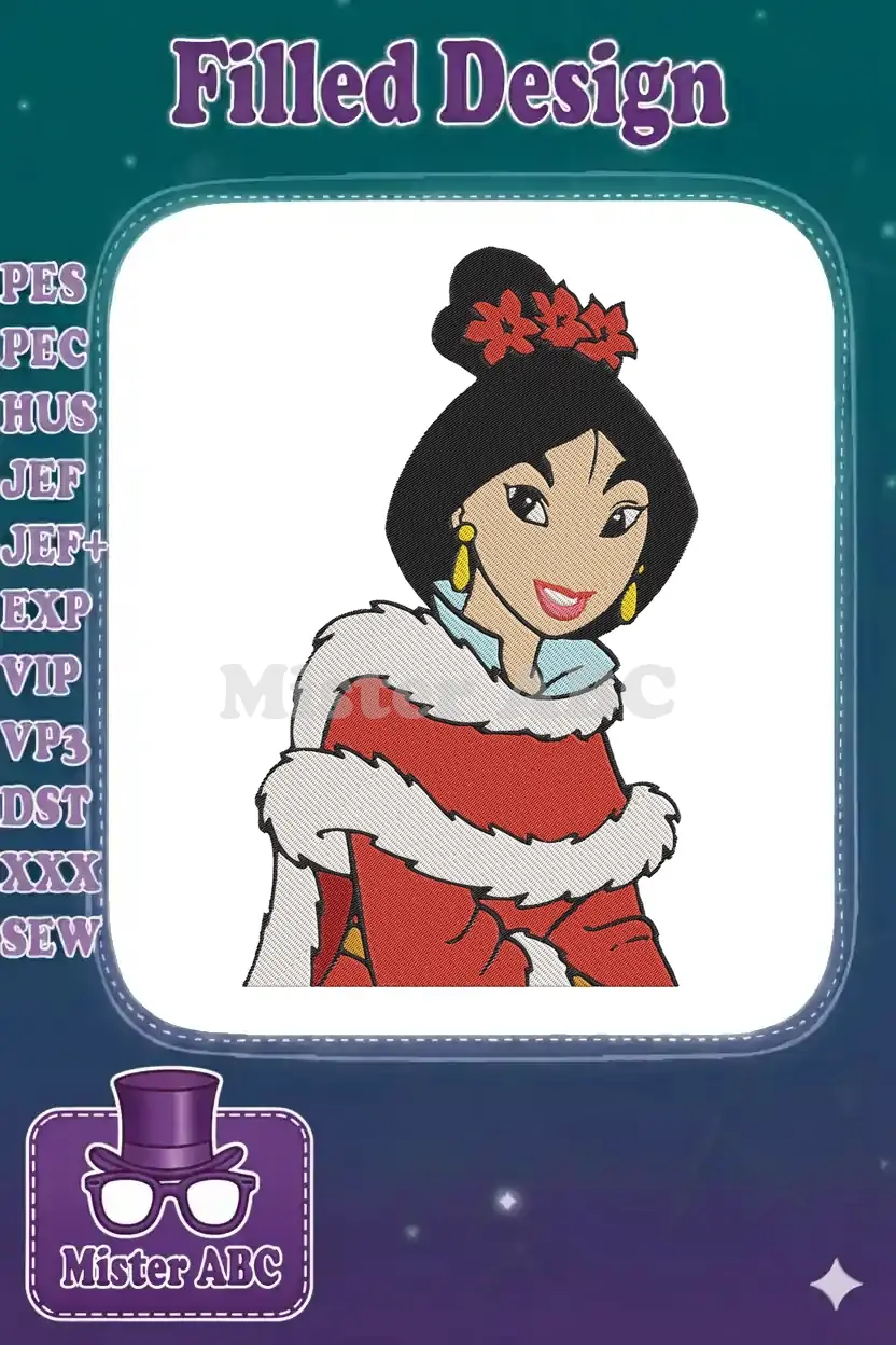 Festive Princess Jasmine inspired red fur coat embroidery designs