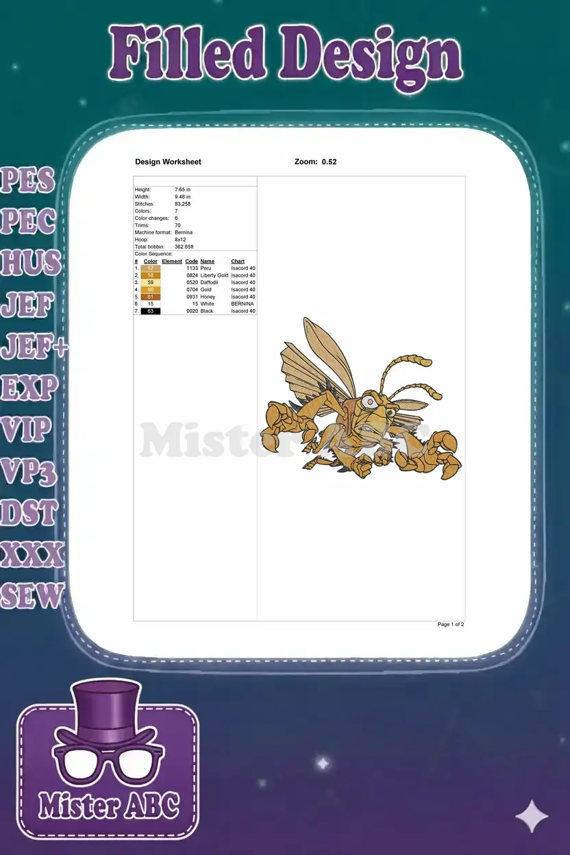 Fierce Brown Cartoon Grasshopper Insect Embroidery Designs