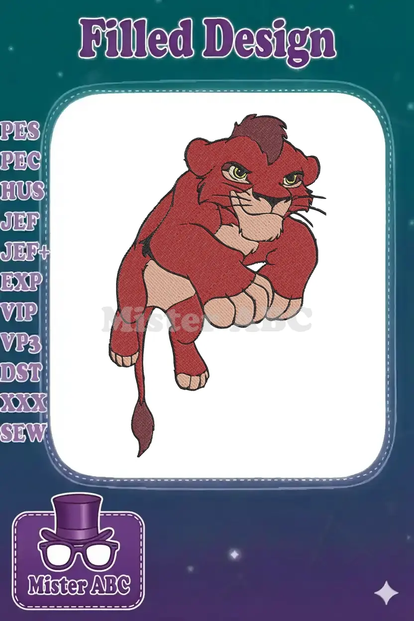 Fierce Red Lion Cub Pouncing Cartoon Embroidery Designs