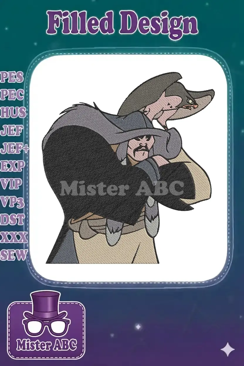Fierce Warrior and Angry Bird Companion Cartoon Embroidery Designs