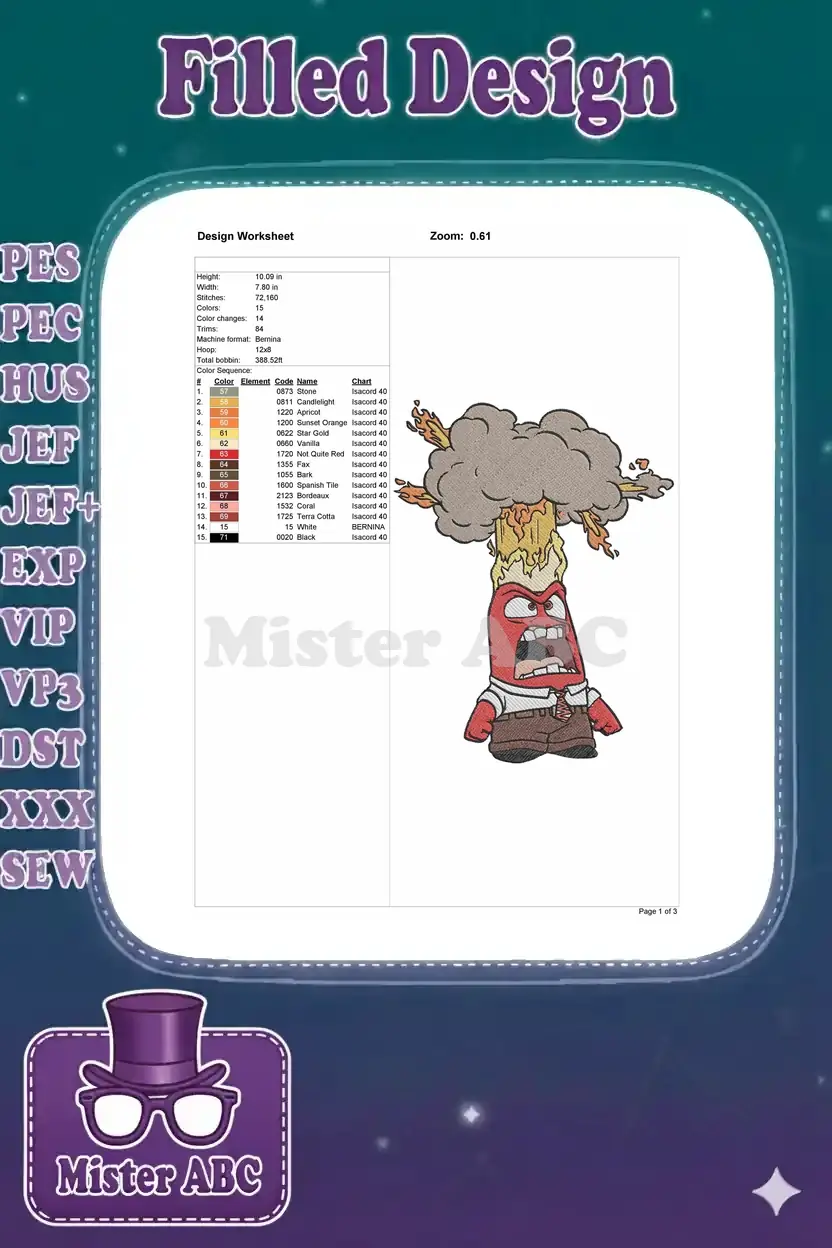 Fiery Anger cartoon character from Inside Out embroidery designs