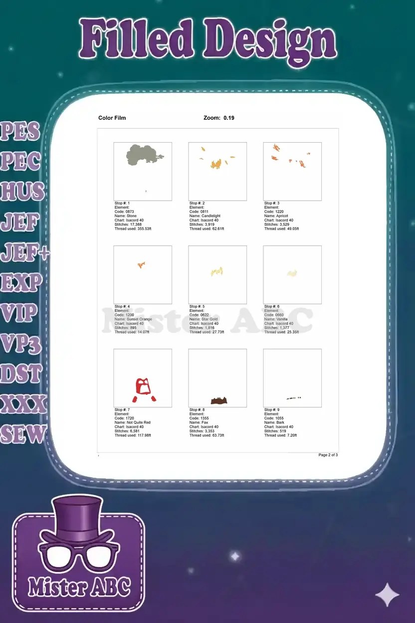 | Stitches | Colors | Thread Changes |