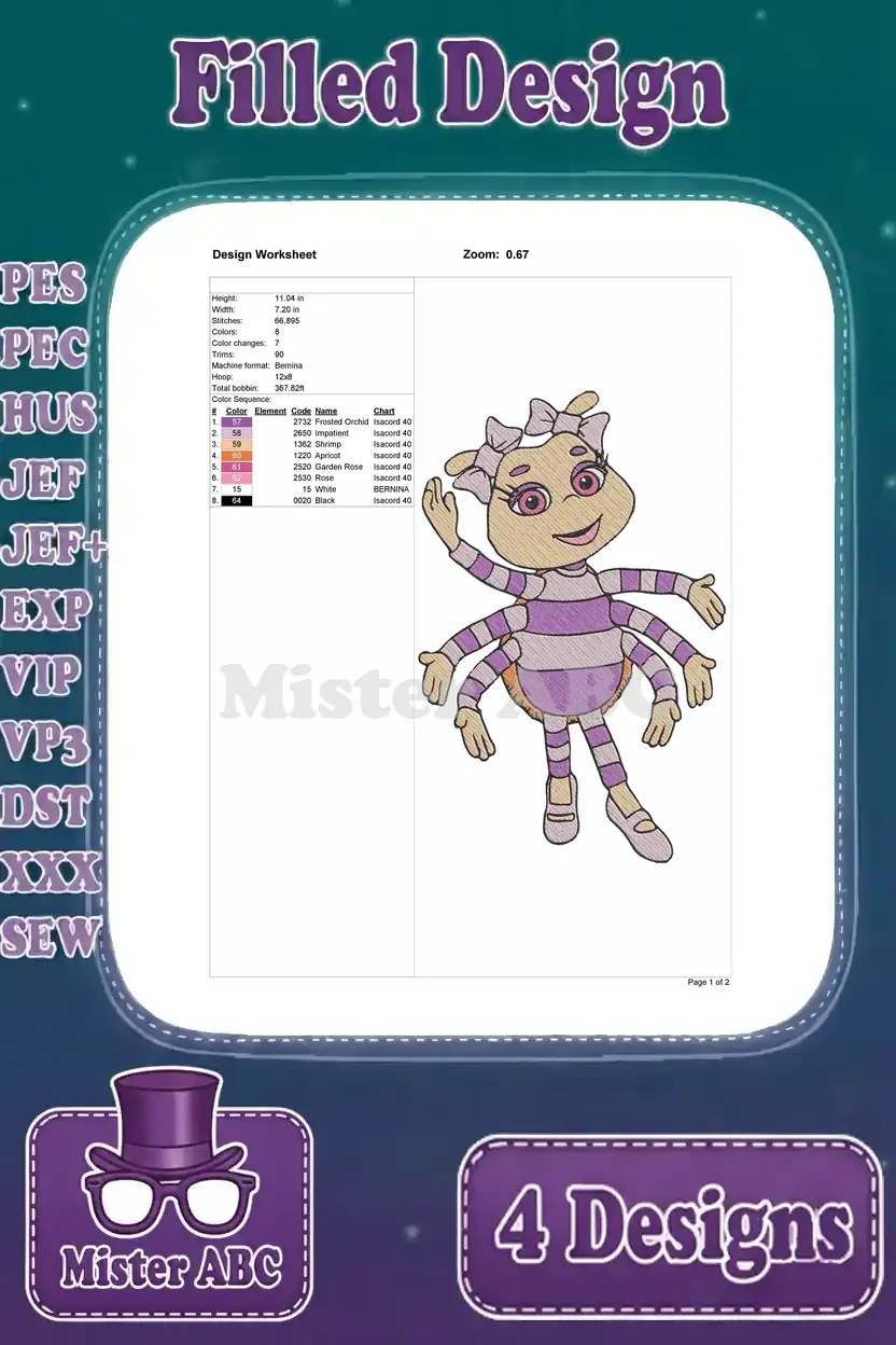 Fifi And The Flowertots – Violet The Flower Tot – Webby The Spider – Cute Garden Critters Pack – Filled Embroidery Design