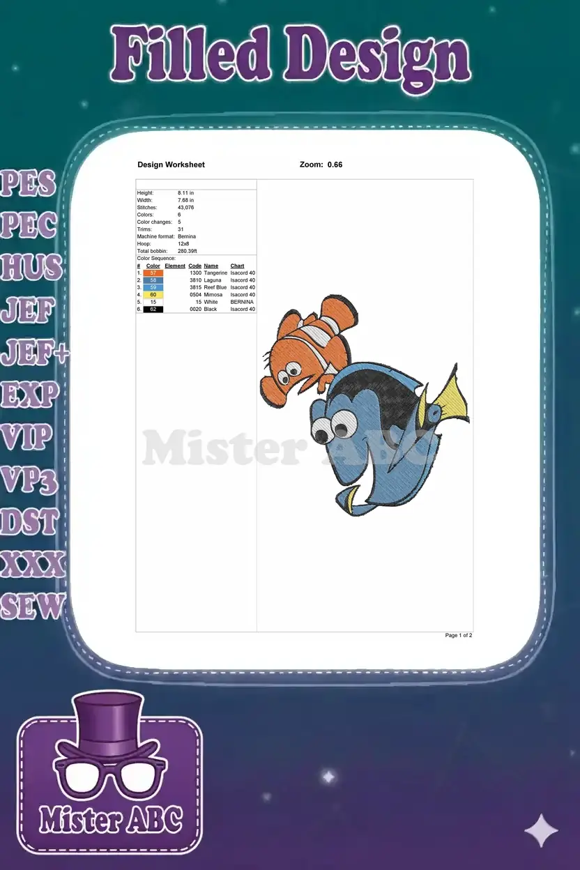 Finding Nemo Dory cute cartoon fish embroidery designs
