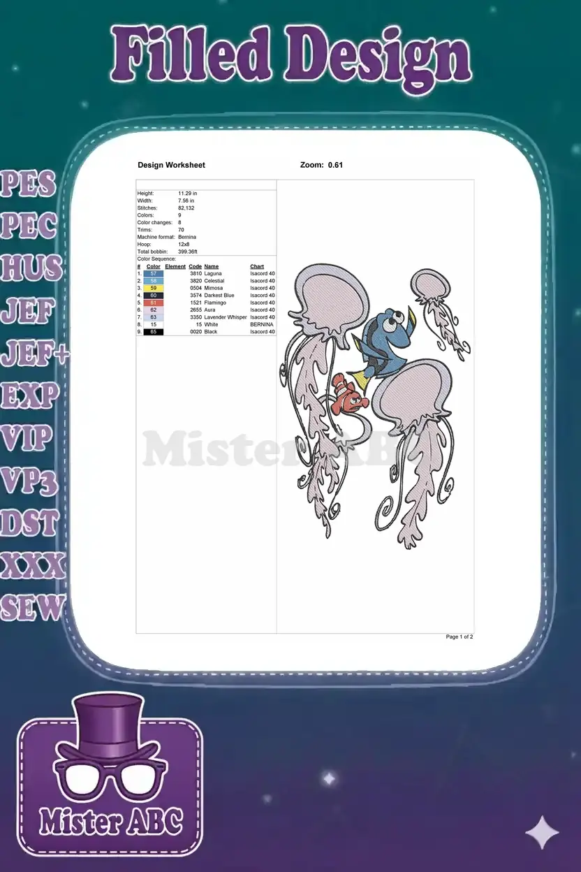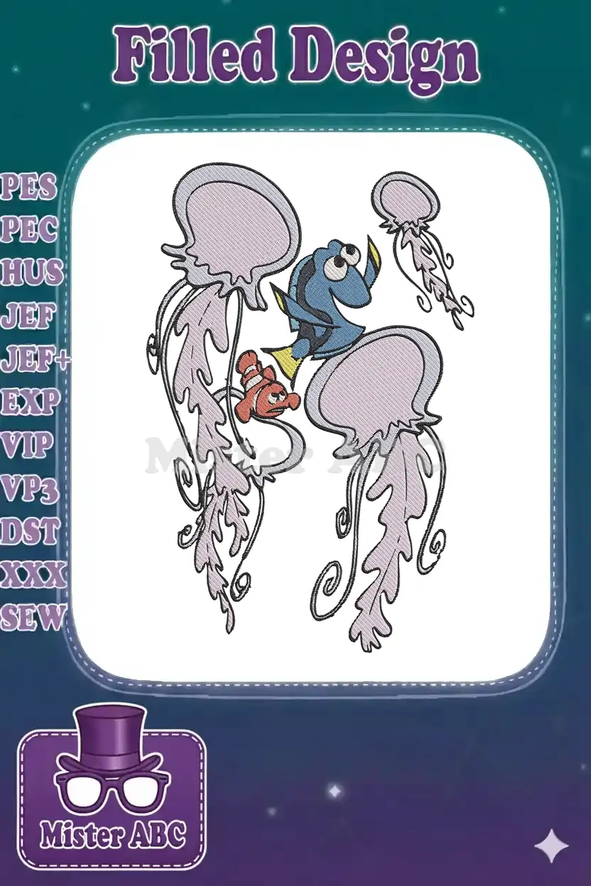 Finding Nemo Dory and Jellyfish underwater adventure embroidery designs