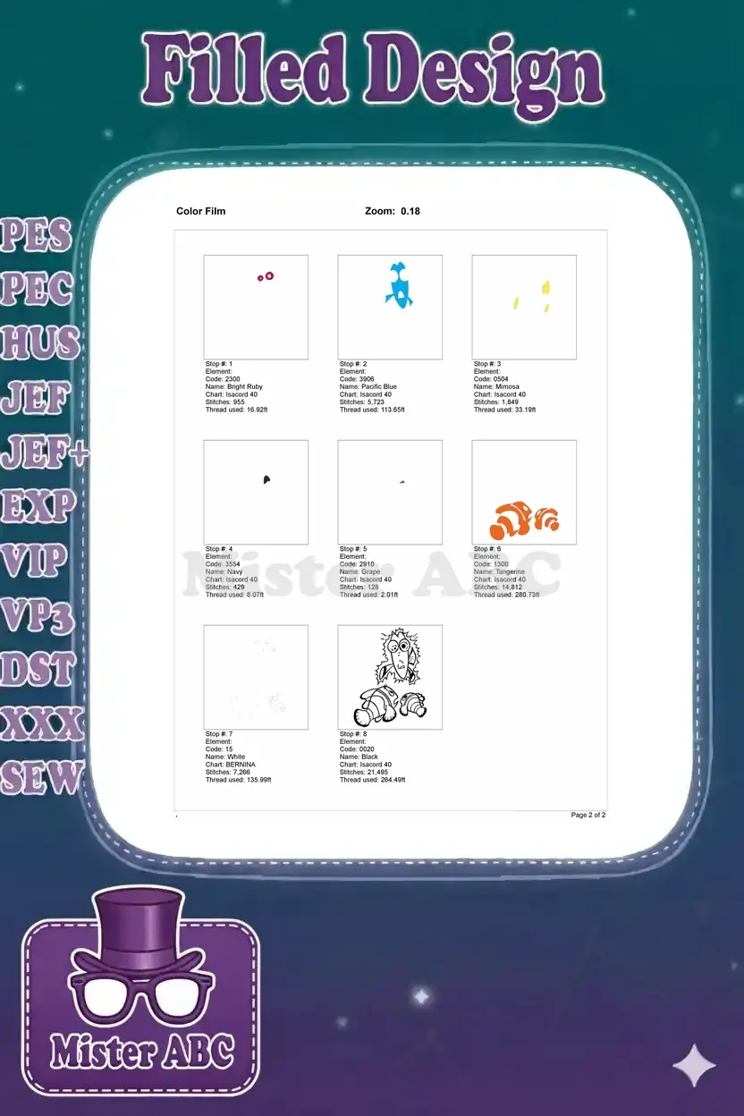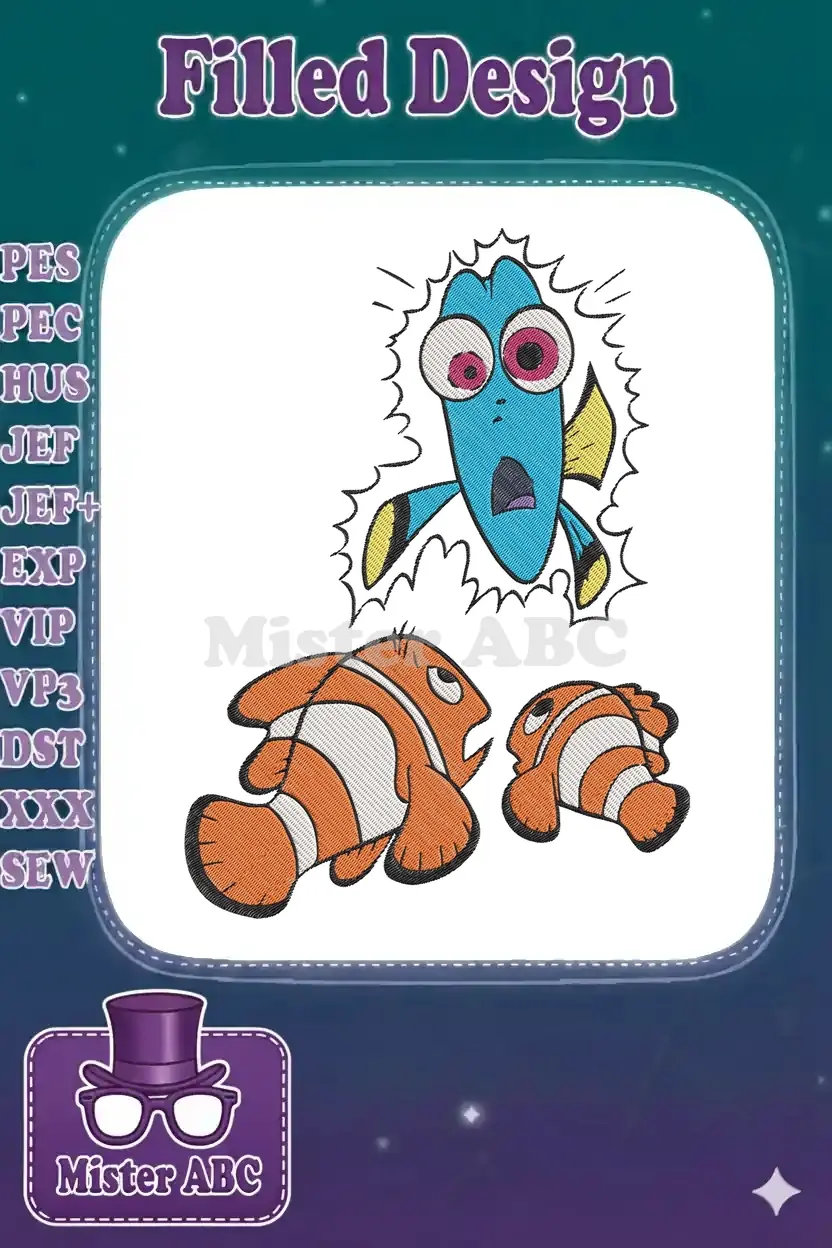 Finding Nemo Dory Shocked Clownfish Father Son Embroidery Designs