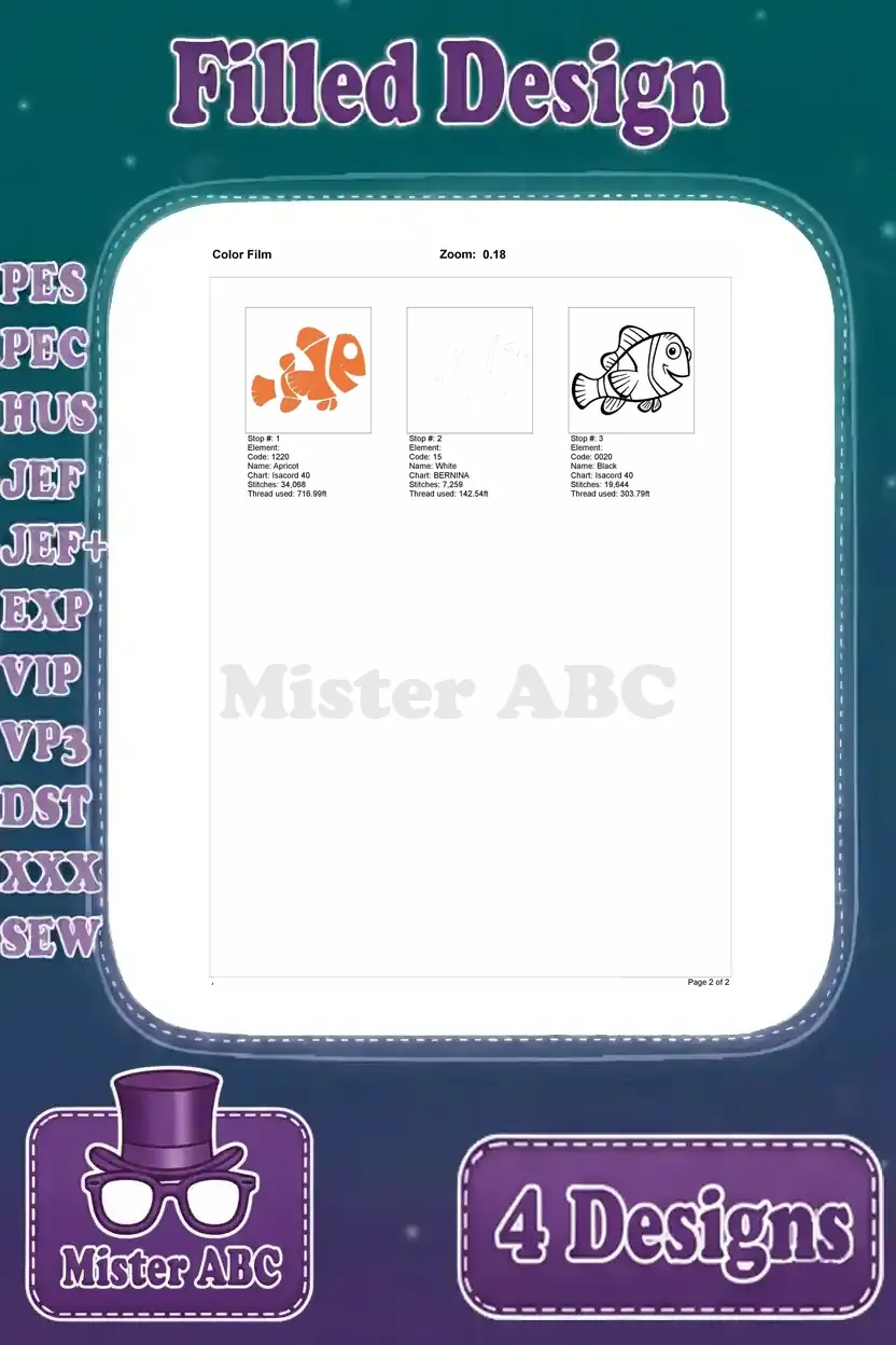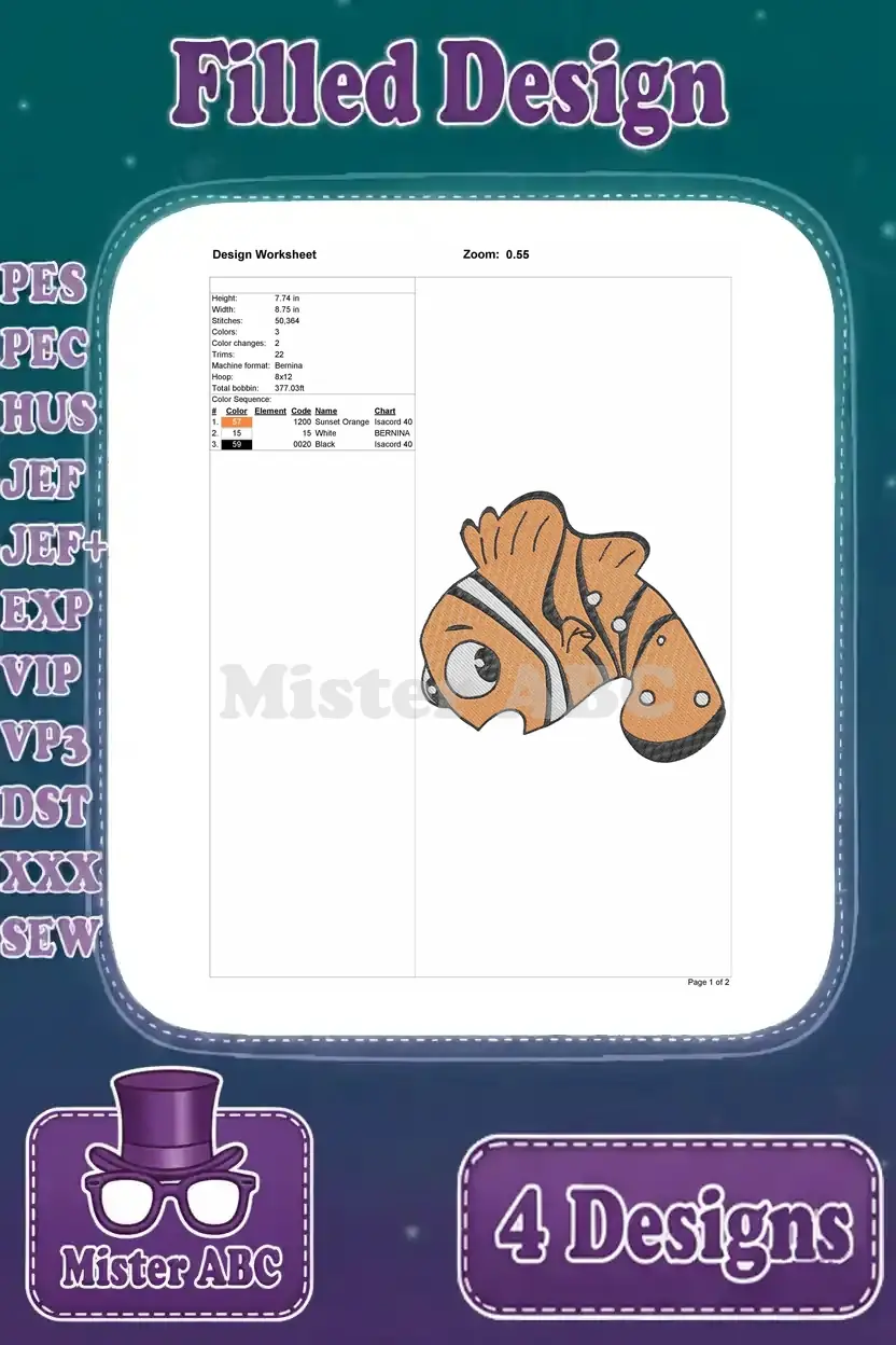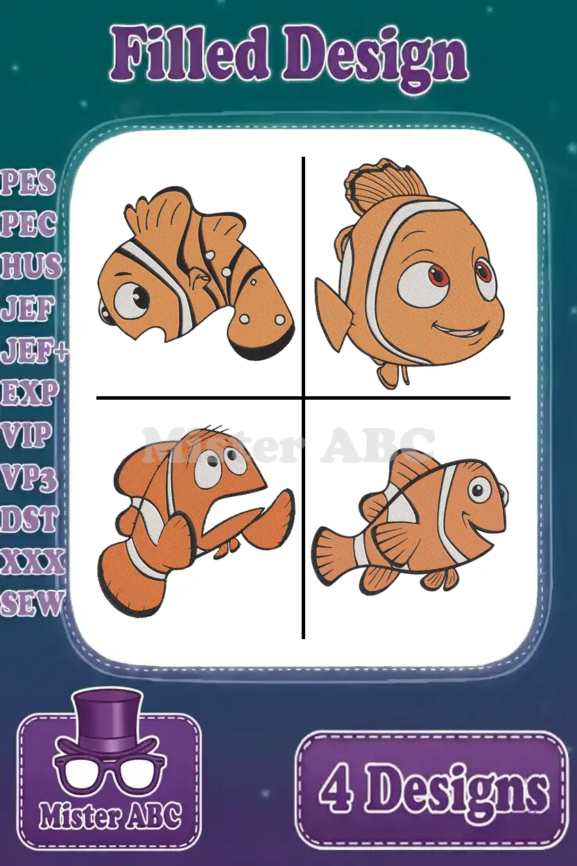 Finding Nemo – Nemo The Adorable Clownfish – Various Happy Poses – Coral Reef Character – Filled Embroidery Design