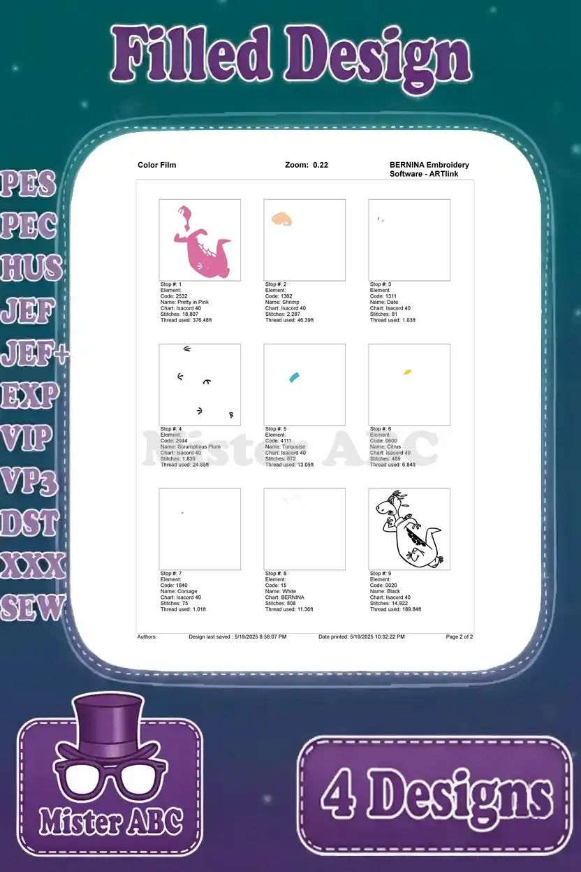 Bring prehistoric fun to your projects! This 4-design embroidery bundle features beloved Flintstones characters, Dino and Fred, in vibrant filled stitches. Perfect for fans!