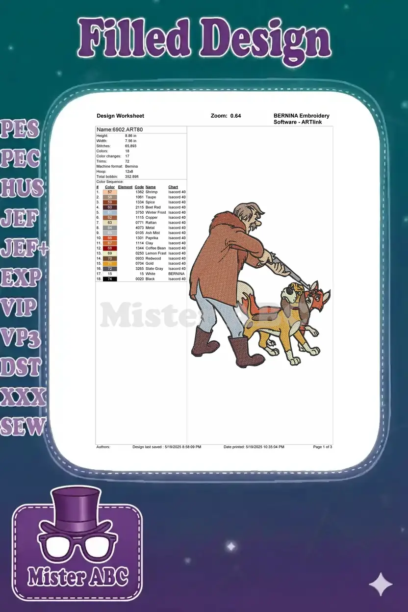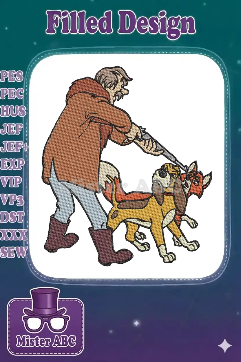 The Fox and the Hound Hunter Dog Fox Cartoon embroidery designs