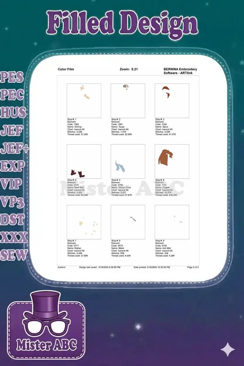 | Stitches | Colors | Thread Changes |