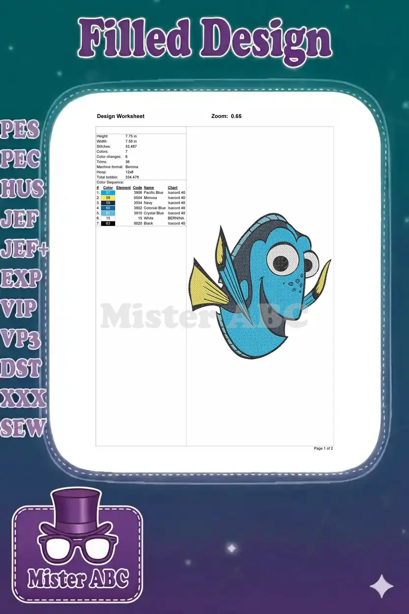 Dive into fun with this vibrant Dory embroidery design, perfect for adding a splash of ocean magic to any project. Capture the beloved blue tang’s cheerful spirit!