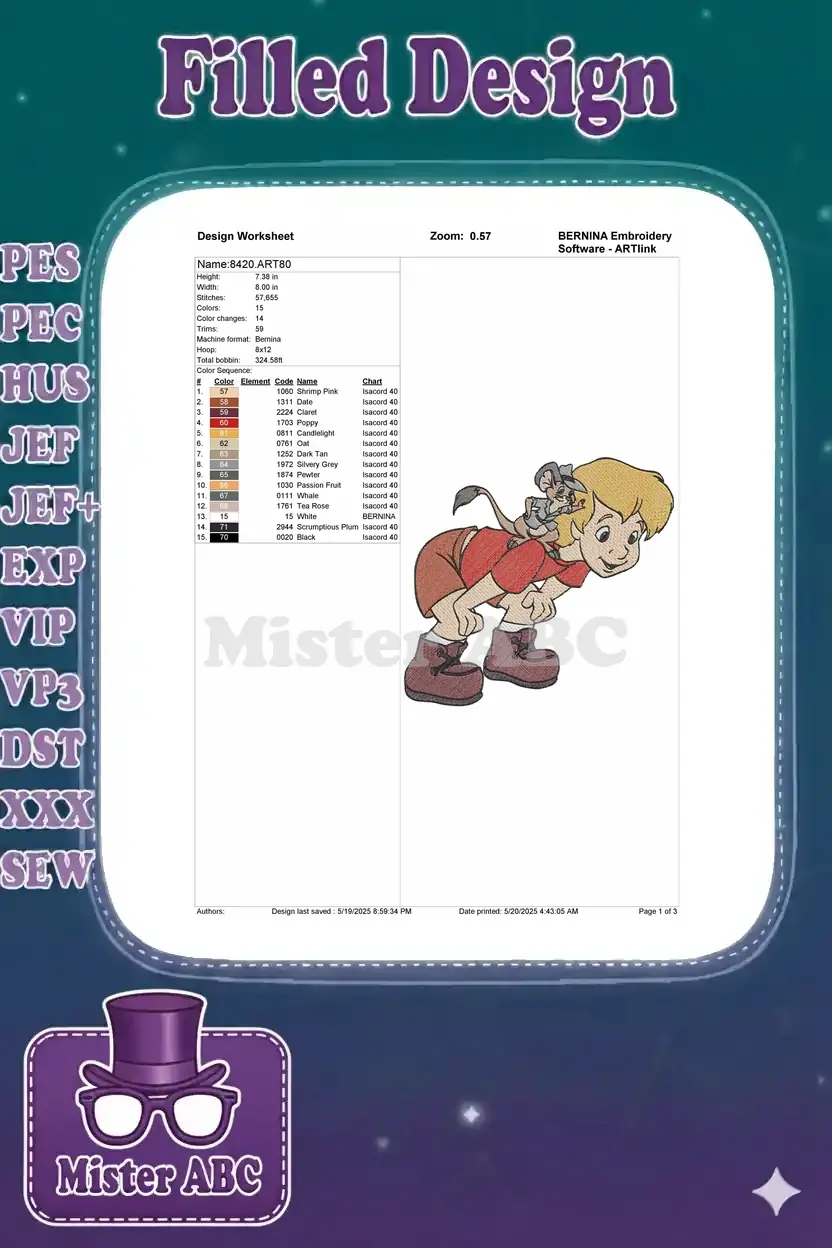 Friendly Boy and Mouse Adventure Embroidery Designs