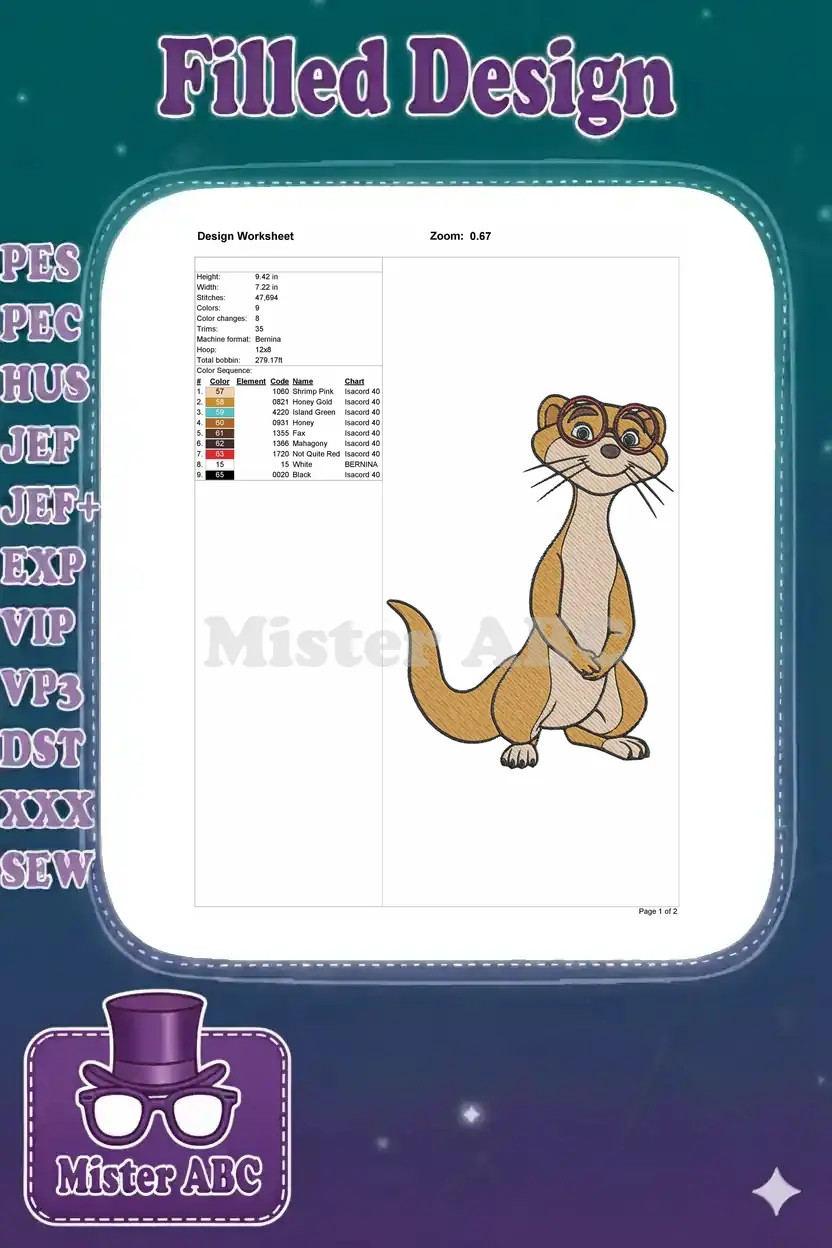 Friendly Cartoon Otter Wearing Red Glasses Embroidery Designs