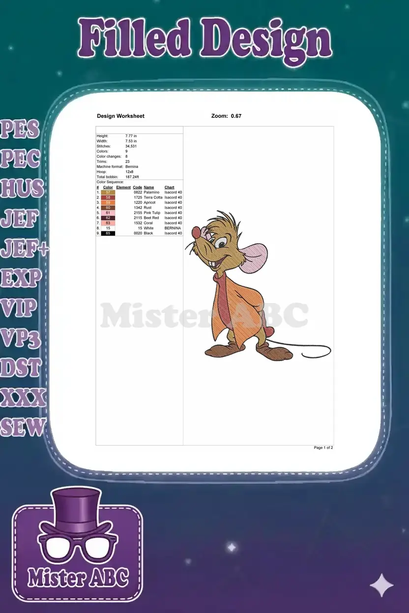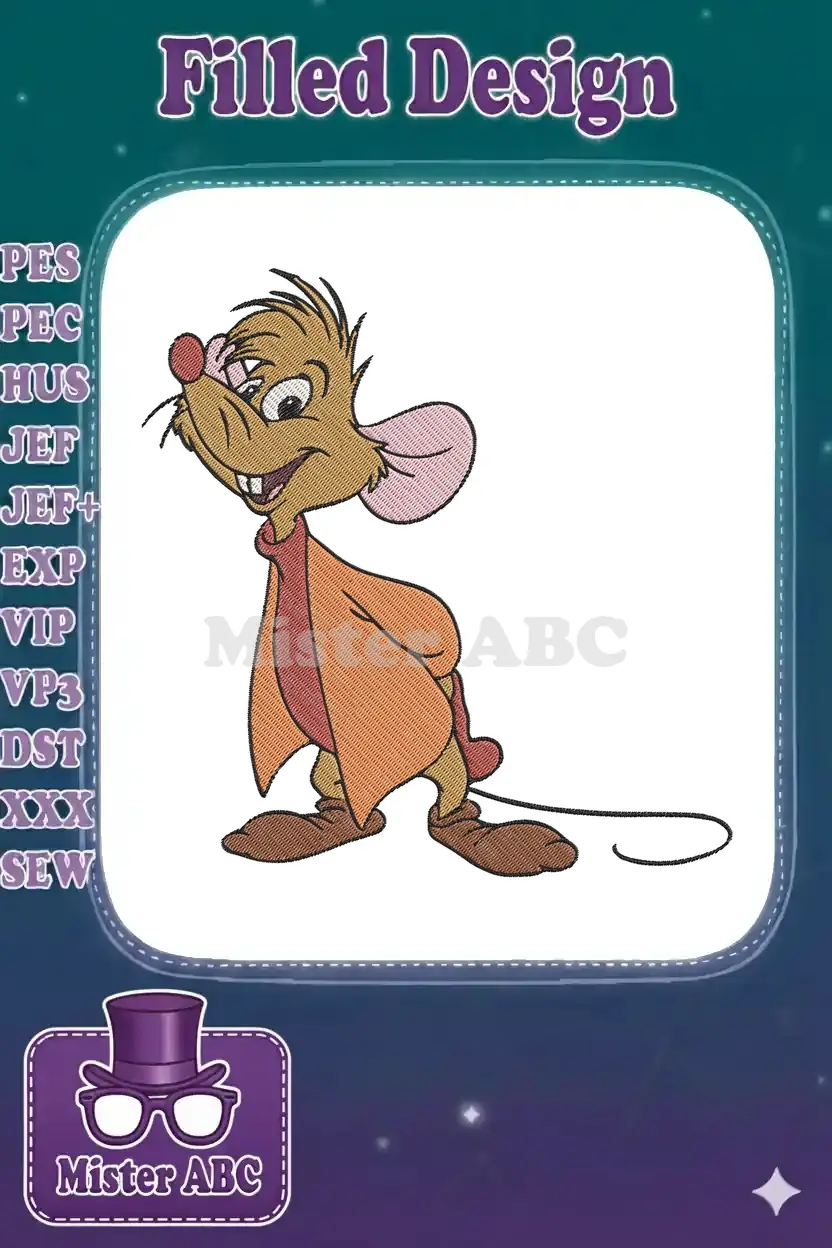 Friendly Gus Gus Cinderella Mouse Cartoon Character Embroidery Designs