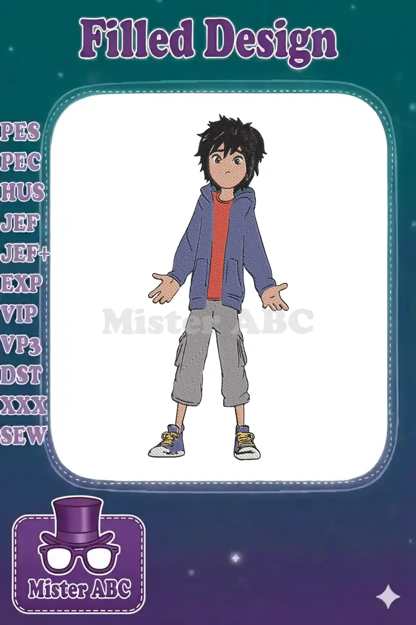 Friendly Hiro Hamada Big Hero 6 cartoon boy embroidery designs