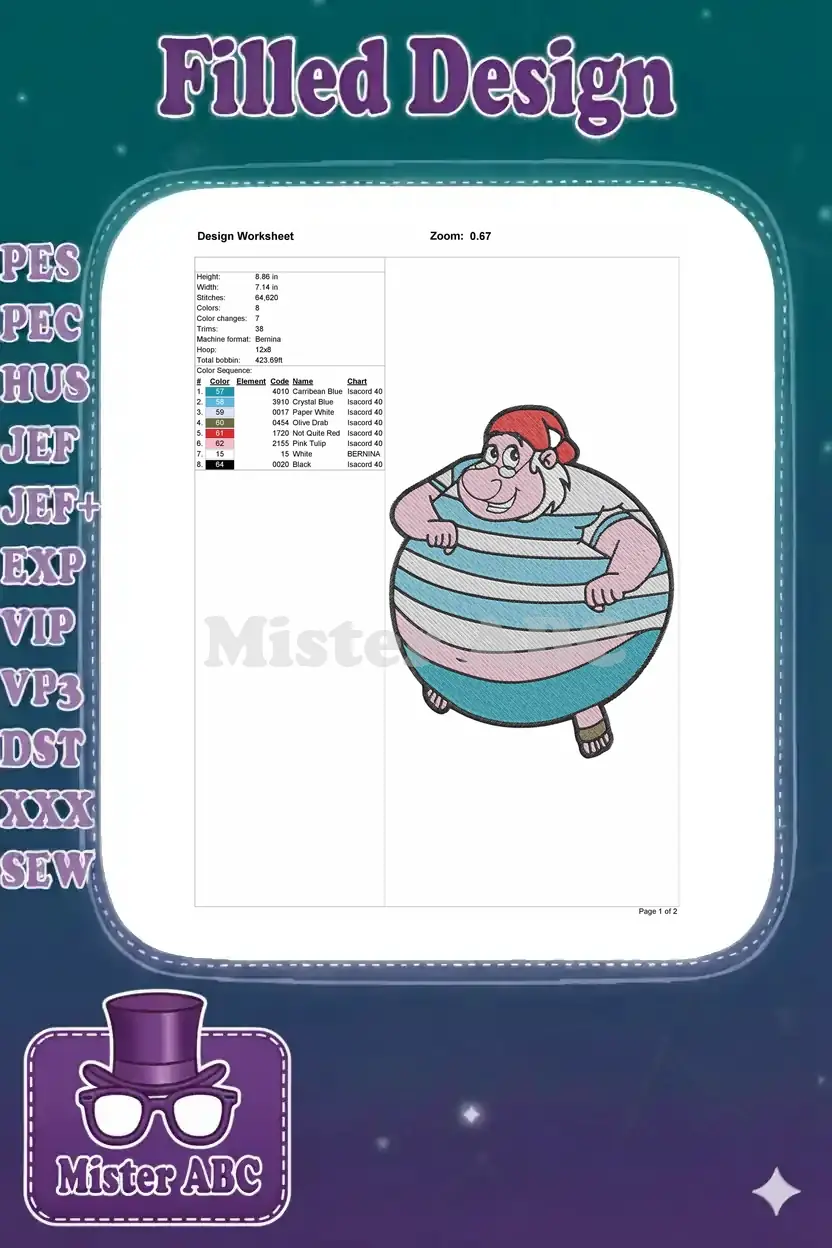Friendly plump cartoon man with glasses nautical embroidery designs