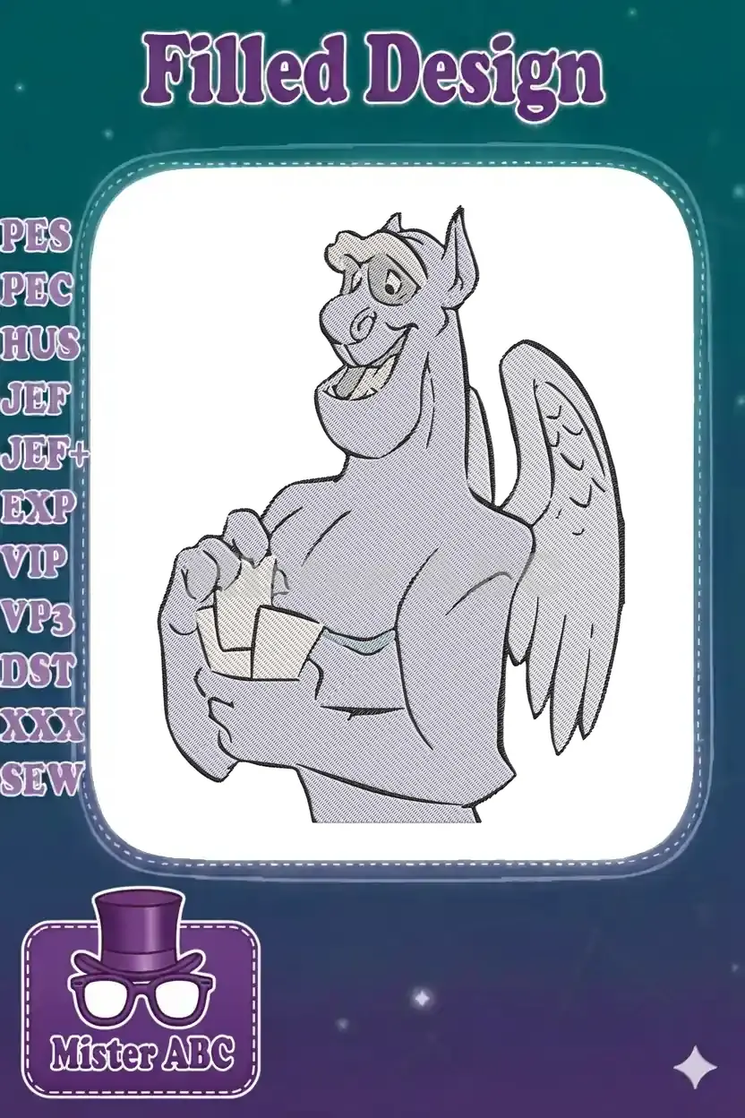 Friendly Stone Gargoyle with Wings Cartoon Character Embroidery Designs