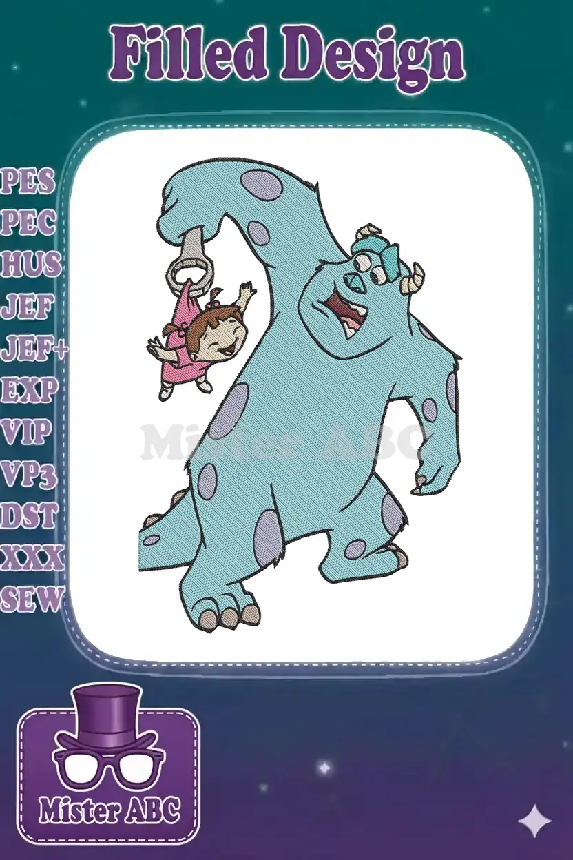 Friendly Sully holding Boo from Monsters Inc embroidery designs