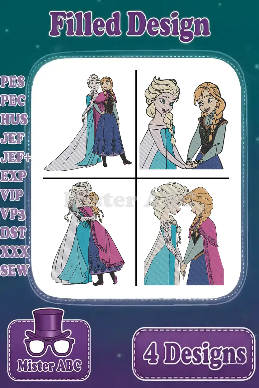 Frozen Elsa And Anna Close Up Portraits And Affectionate Sisterly Moments – Filled Embroidery Design