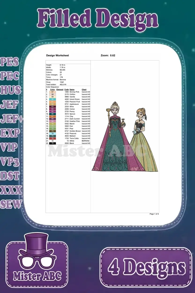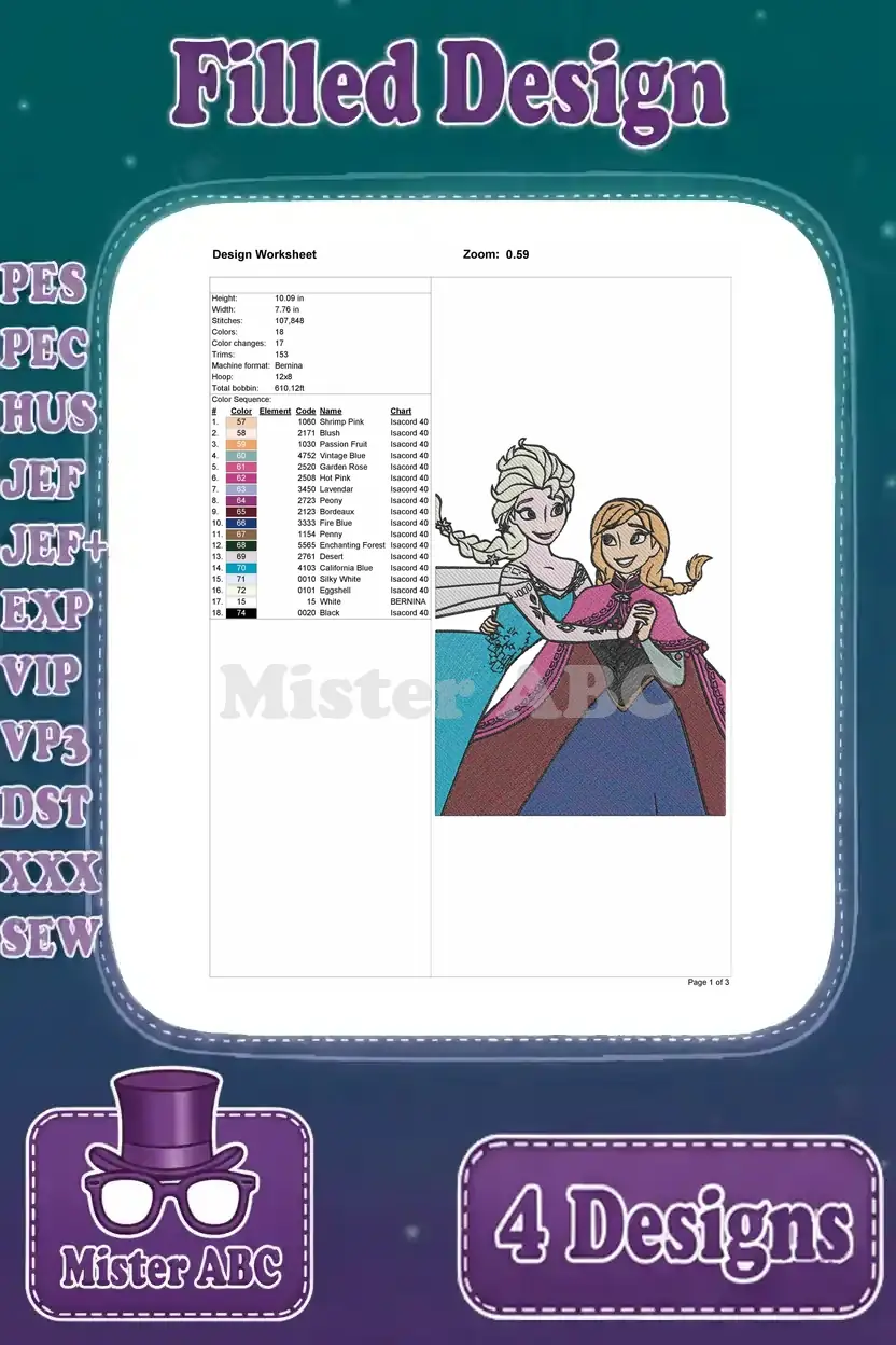 Frozen Elsa And Anna Coronation Outfits Winter Dresses And Warm Embraces – Filled Embroidery Design