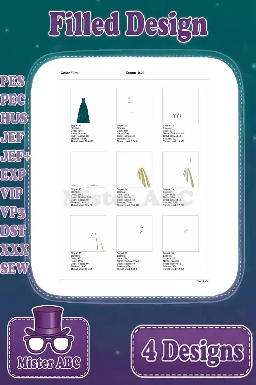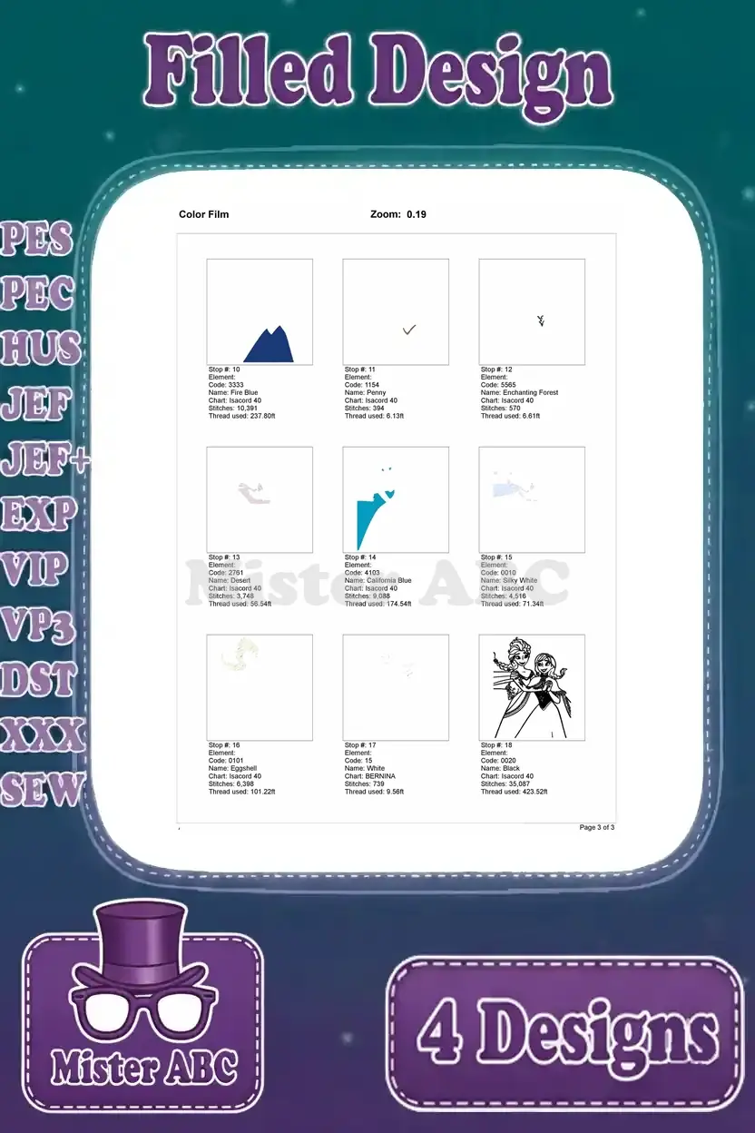 | Stitches | Colors | Thread Changes |