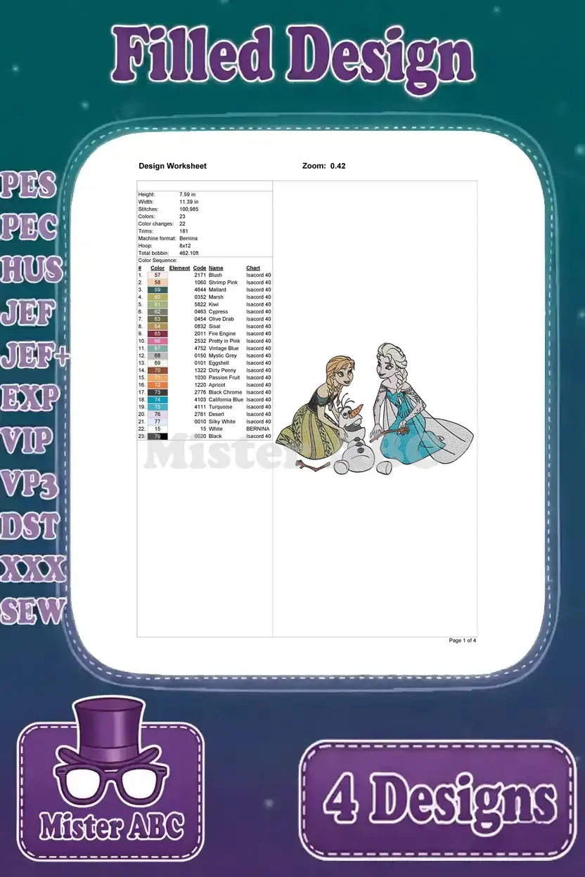 Frozen Elsa Anna Olaf Snowman Kristoff And Pabbie The Troll King Scenes – Filled Embroidery Design