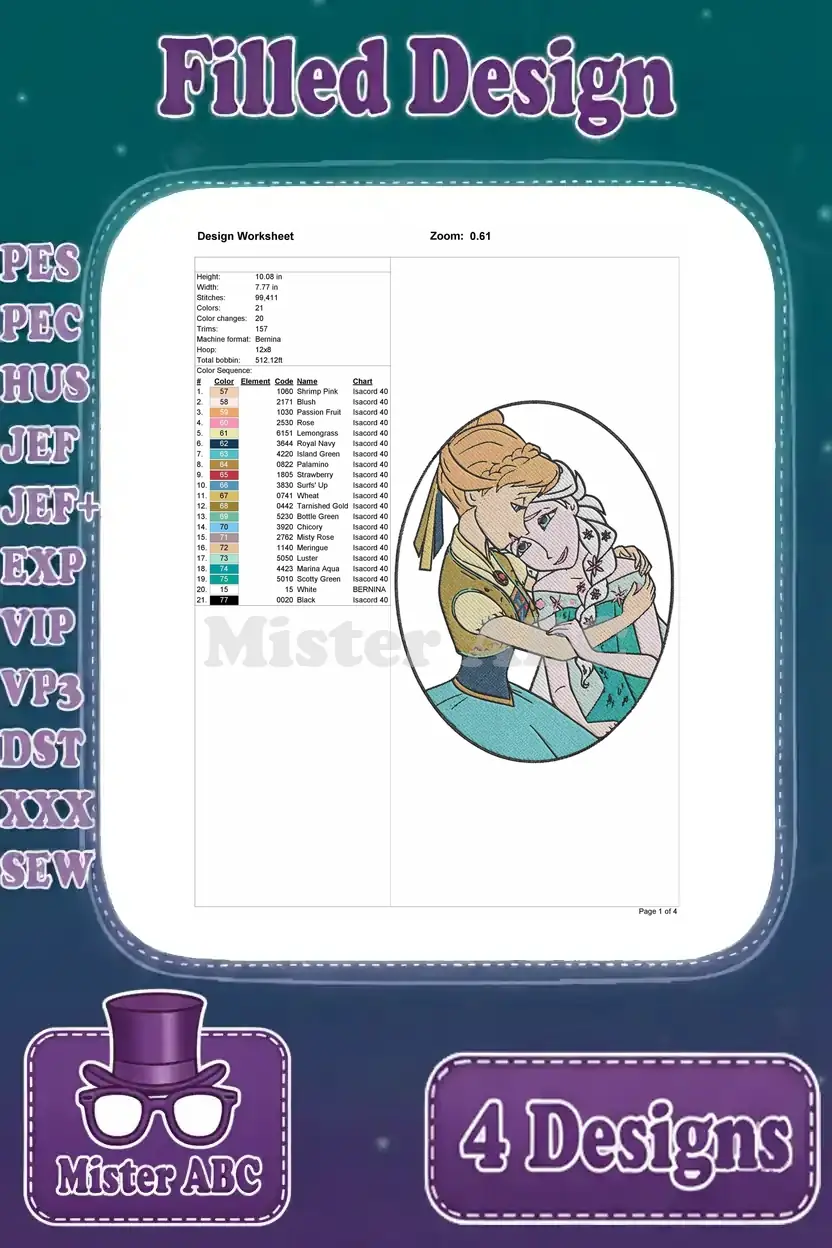 Frozen Elsa And Anna Sisterly Portraits Oval Frames And Full Body Poses - Filled Embroidery Design - Instant Download Frozen Elsa And Anna Sisterly Portraits Oval Frames And Full Body Poses – Filled Embroidery Design – Instant Download