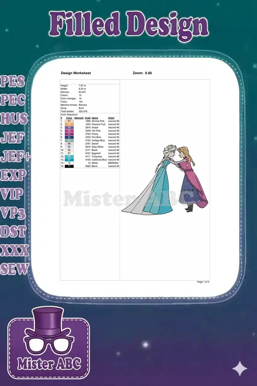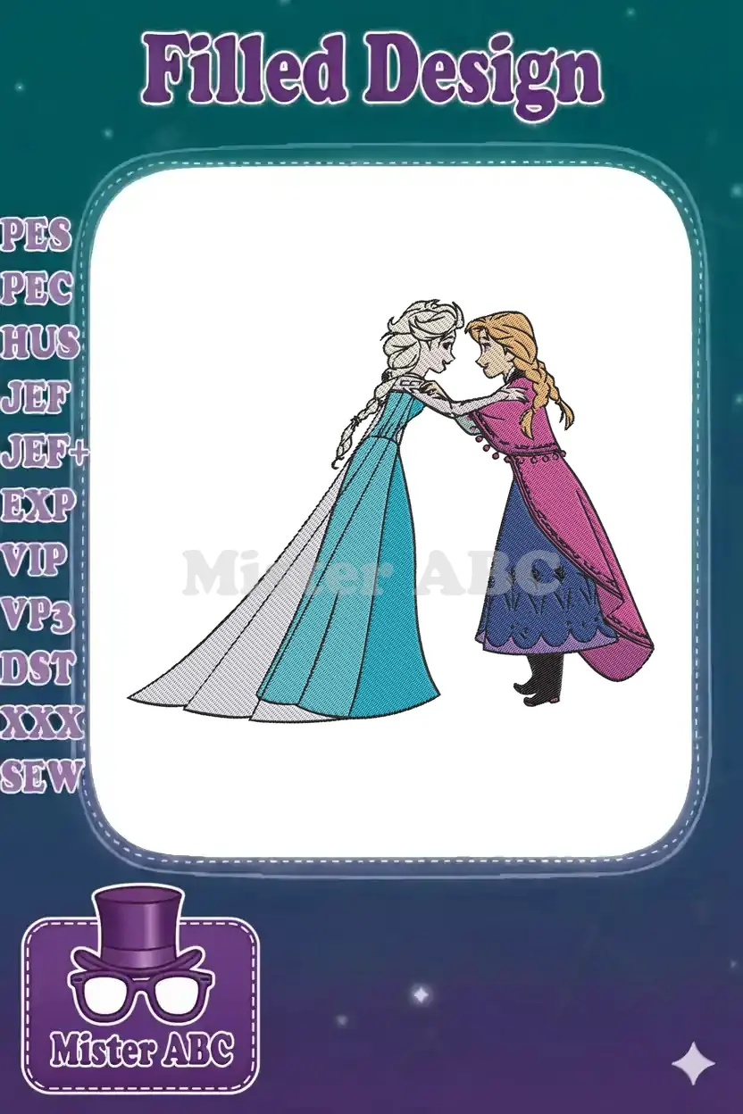 Frozen Elsa and Anna Sisters Embracing Embroidery Designs