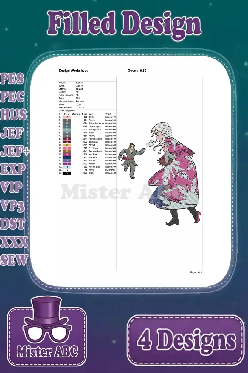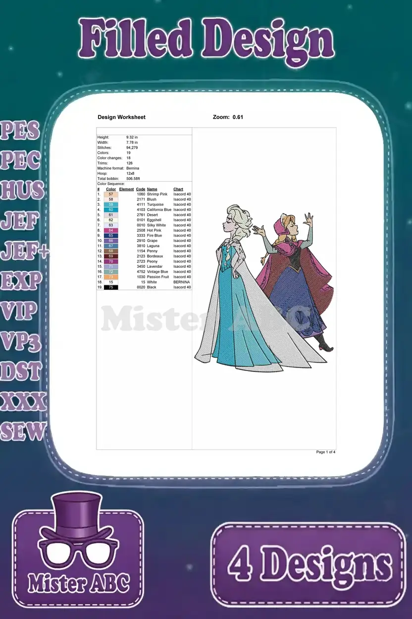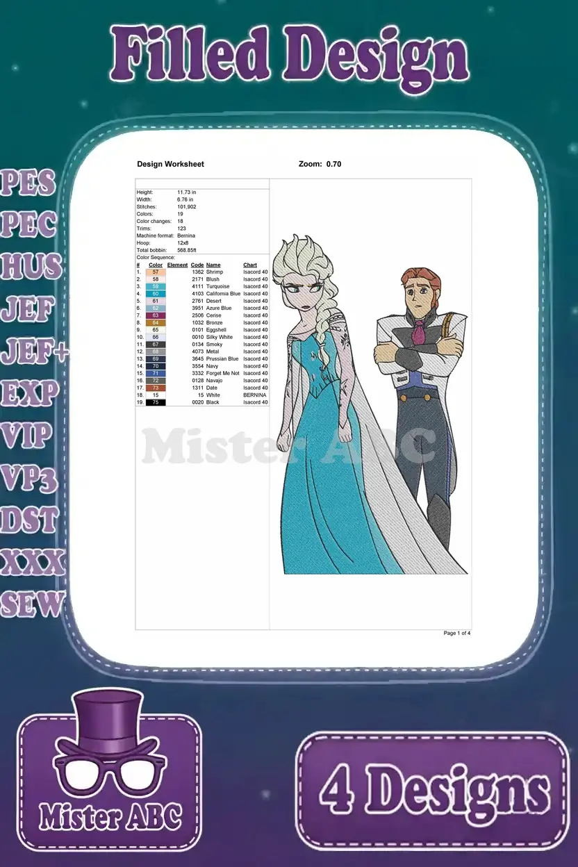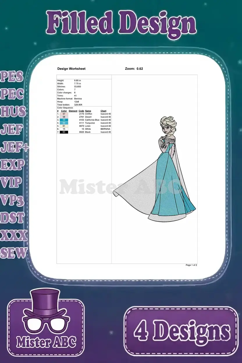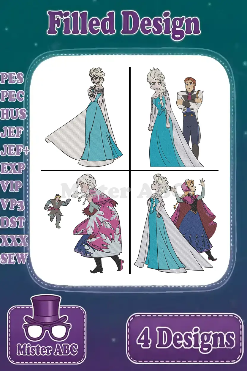 Frozen Elsa Ice Gown Anna Winter Outfit Kristoff And Sven Various Poses – Filled Embroidery Design