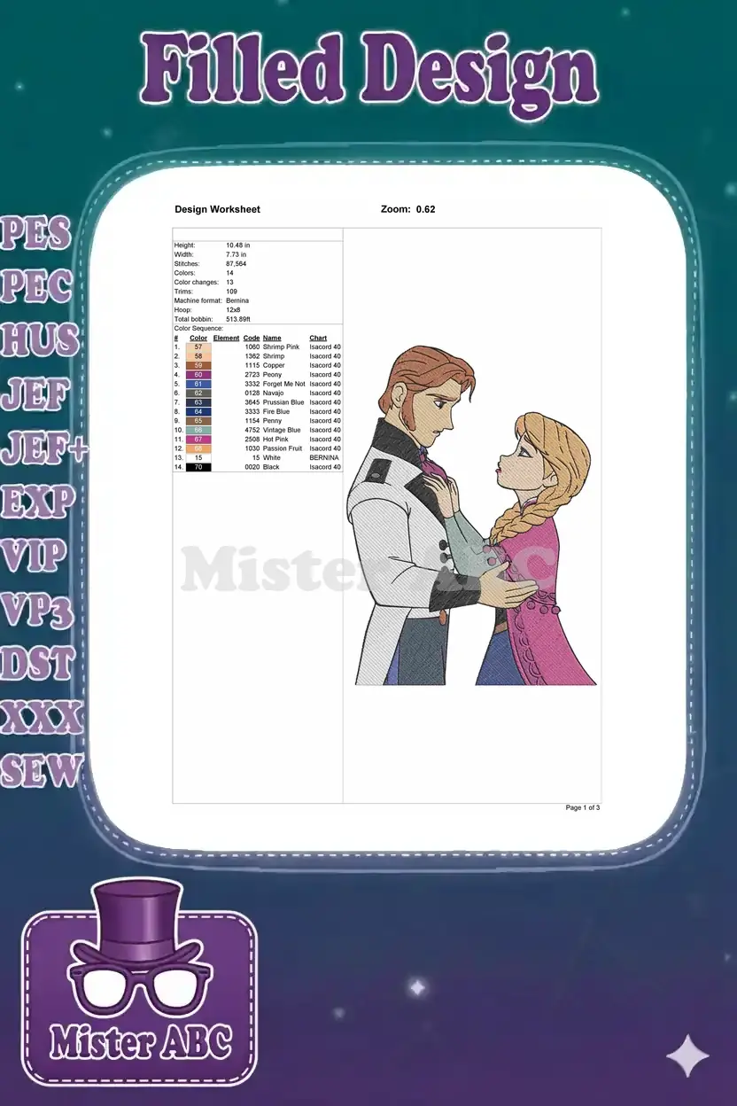 Frozen Hans and Anna romantic embrace embroidery designs