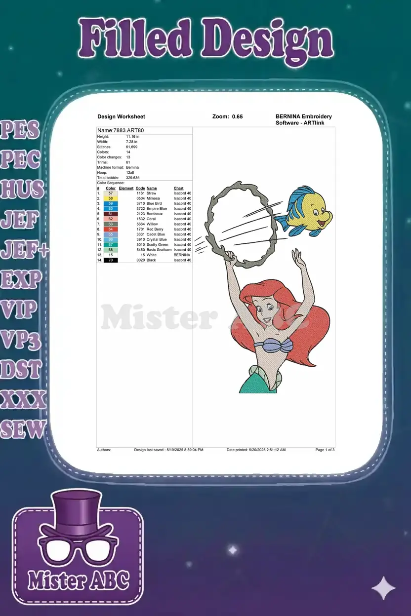 Fun Little Mermaid Ariel Flounder hoop jumping cartoon embroidery designs