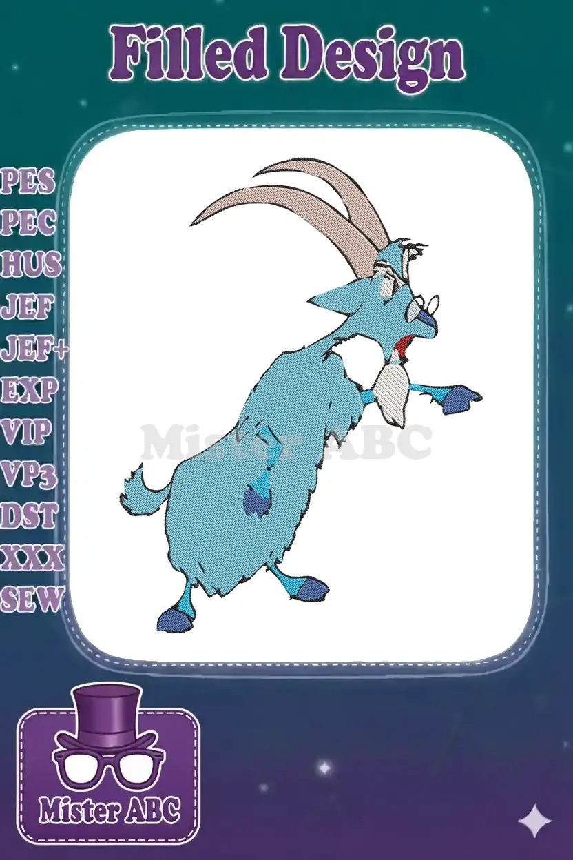 Funny blue cartoon goat with spectacles embroidery designs