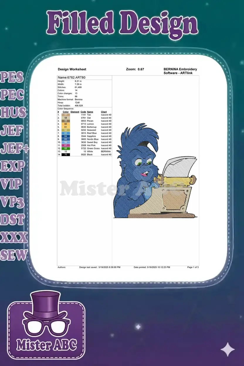 Funny blue cartoon gorilla typing on a vintage typewriter embroidery designs - Instant Download Funny blue cartoon gorilla typing on a vintage typewriter embroidery designs – Instant Download