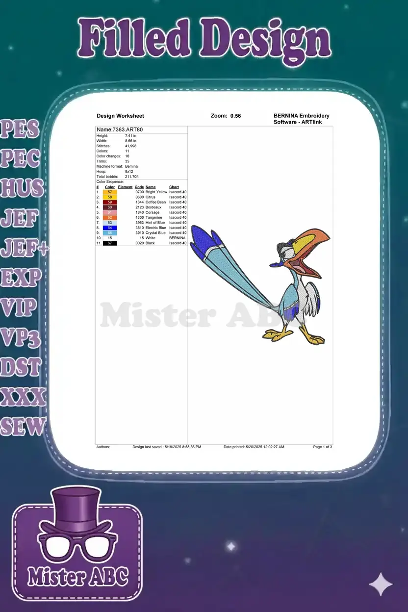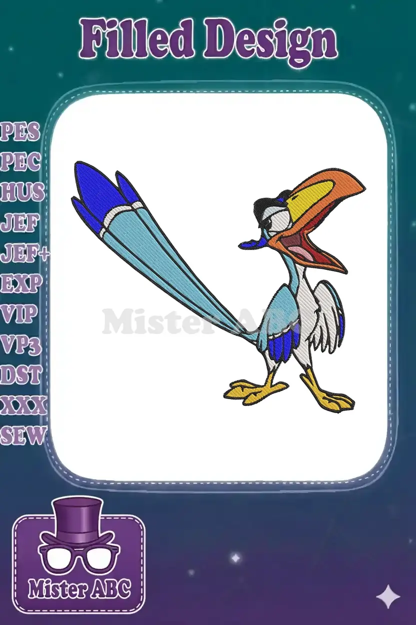 Funny Cartoon Blue Roadrunner Bird Yelling Fast Embroidery Designs