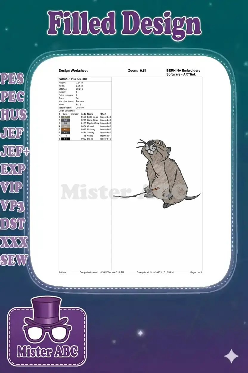 Funny Cartoon Groundhog Holding Stick Animal Embroidery Designs