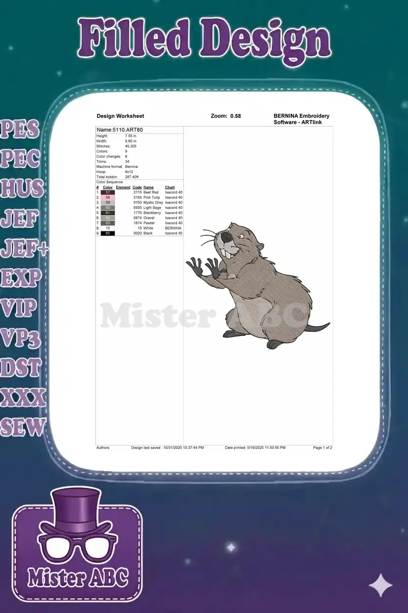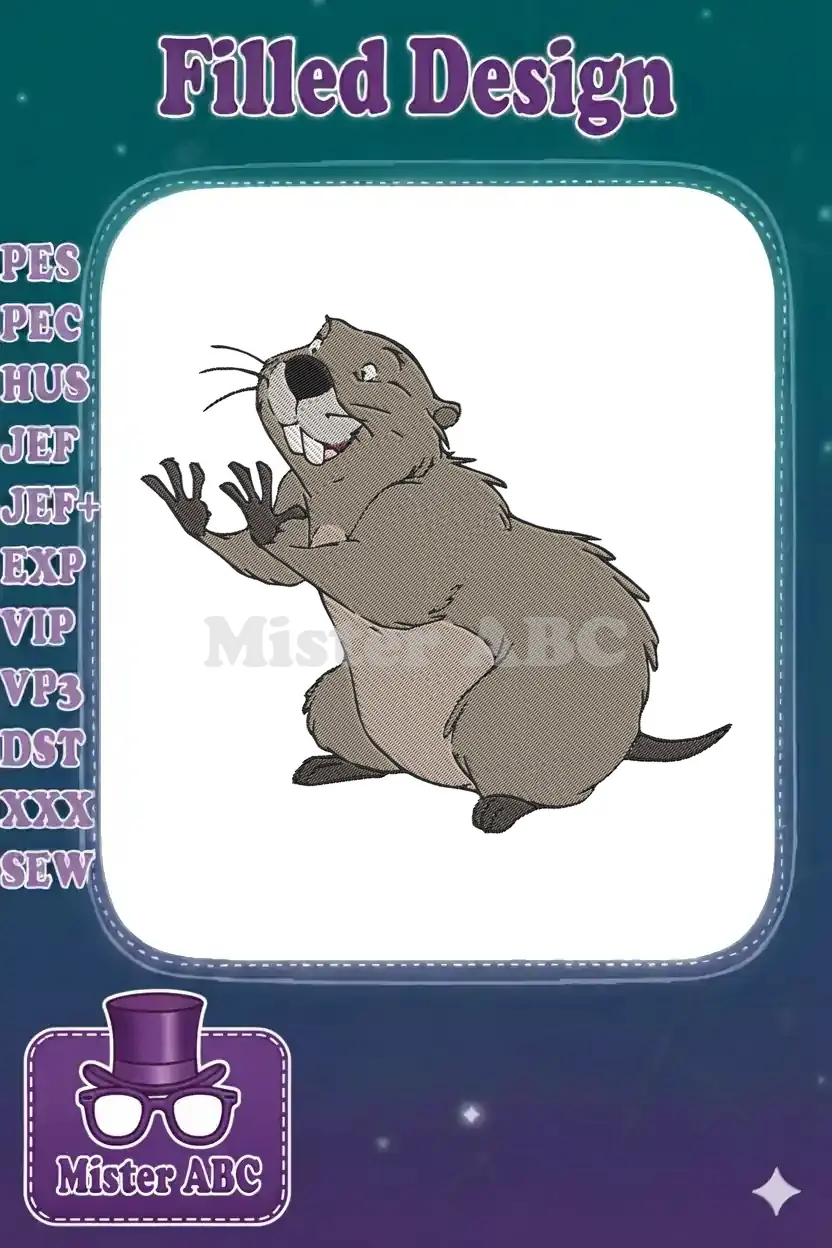 Funny Cartoon Groundhog with Raised Paws Embroidery Designs