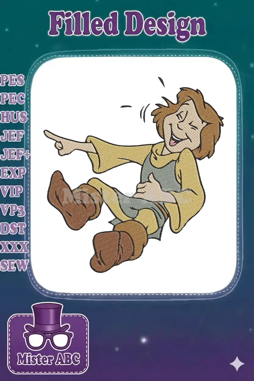 Funny Cartoon Medieval Boy Pointing Laughing Embroidery Designs