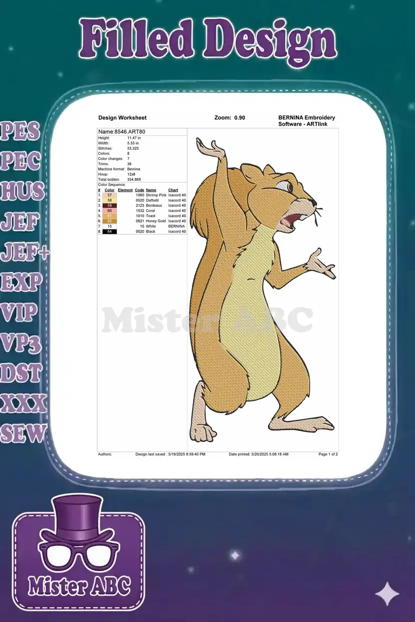 Funny cartoon squirrel with raised arms machine embroidery designs